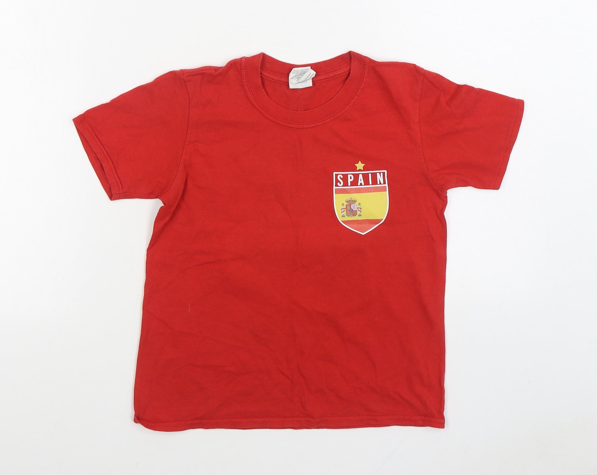 Boys Red 100% Cotton Basic T-Shirt Size 7-8 Years Round Neck Pullover