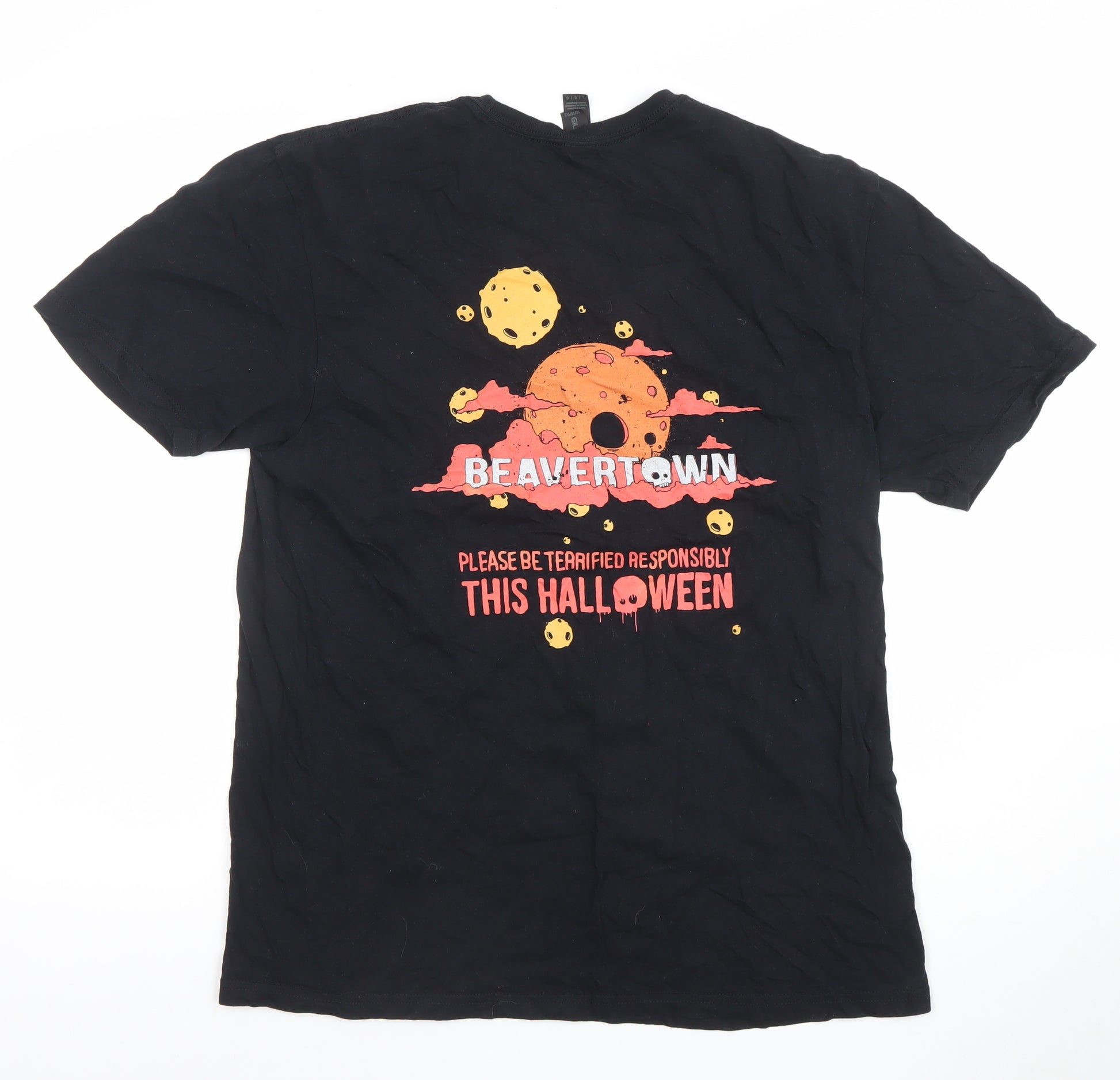 Mens Black Beavertown Halloween Graphic Cotton T-Shirt Size L