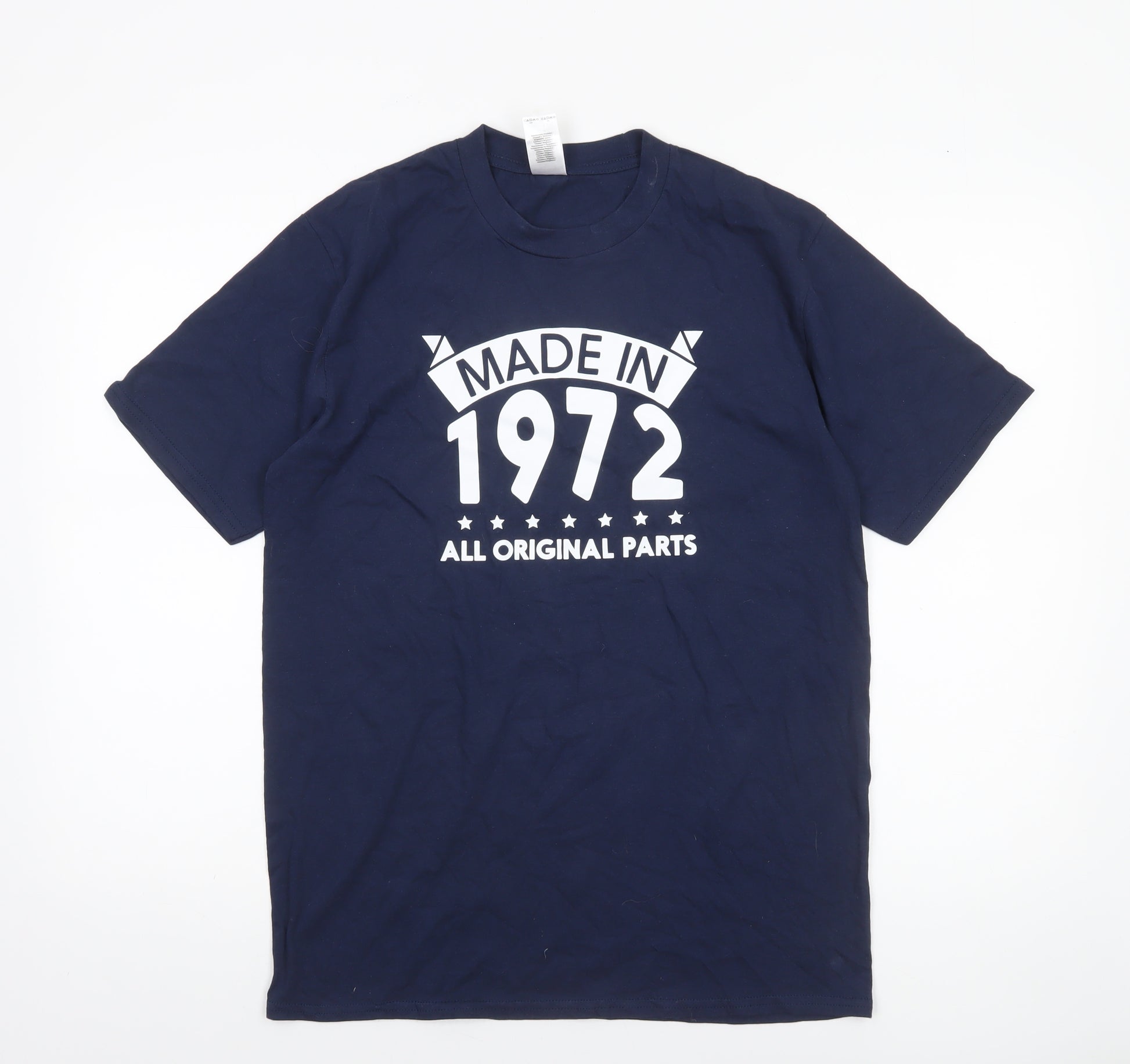 Mens Blue Funny 1972 Retro Graphic Short Sleeve T-Shirt Size M