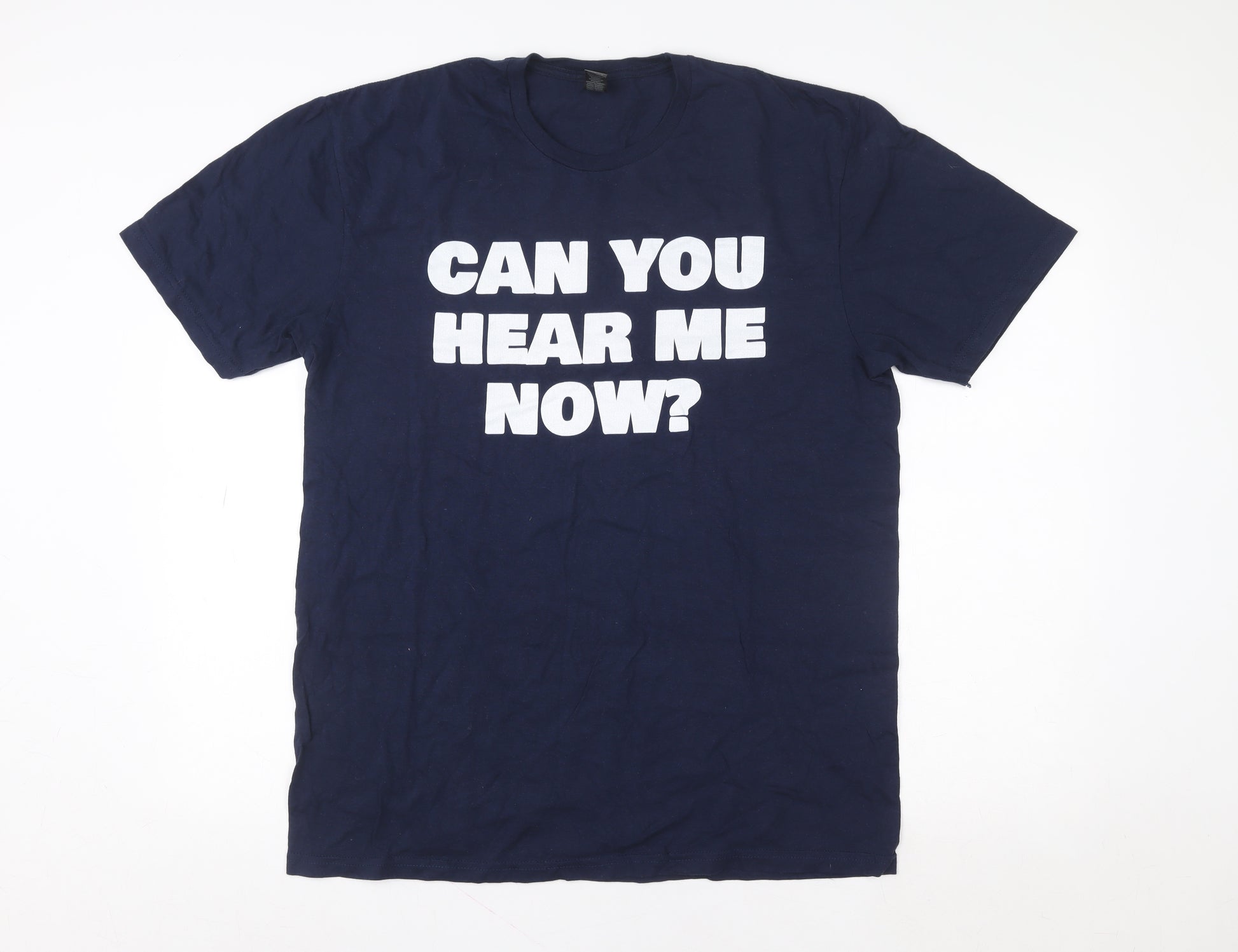Men's Blue Funny Graphic 'Can You Hear Me Now?' T-Shirt Size L