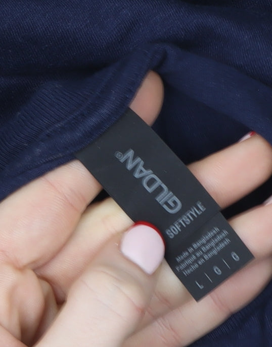 Add a touch of humour to your casual wardrobe with this Gildan Men's Blue Funny Graphic 'Can You Hear Me Now?' T-Shirt. Crafted from soft and breathable 100% cotton jersey, this short sleeve crew neck T-shirt offers lasting comfort and an easy, classic fit that’s ideal for everyday wear. The lightweight fabric ensures all-season versatility, while the iconic text design printed boldly across the front brings a statement-making appeal perfect for relaxed weekends, casual outings or lounging at home. The deep navy blue colour complements the contrasting white text, giving it a modern and playful edge. Gildan’s quality Softstyle construction delivers a smooth texture that holds its shape after washing. With a standard large men’s fit, it provides a comfortable and easy wear suitable for most builds. The category of Funny and Quotes themes makes this an excellent conversation starter or gift idea for someone with a playful personality. The T-shirt remains in very good pre-owned condition with only light creasing from wear and washing, showing no visible stains or damage. Its easy-care, machine washable cotton construction ensures simple maintenance and durability. Designed for breathability and hassle-free comfort, it’s the perfect addition to jeans, shorts, or joggers for a laid-back look. Whether you’re heading out for casual meetups, lounging at home, or adding some fun to your wardrobe, this Gildan graphic tee ensures effortless style with personality to match. Affordable, timeless, and full of character, it’s a wardrobe essential with a humorous twist.