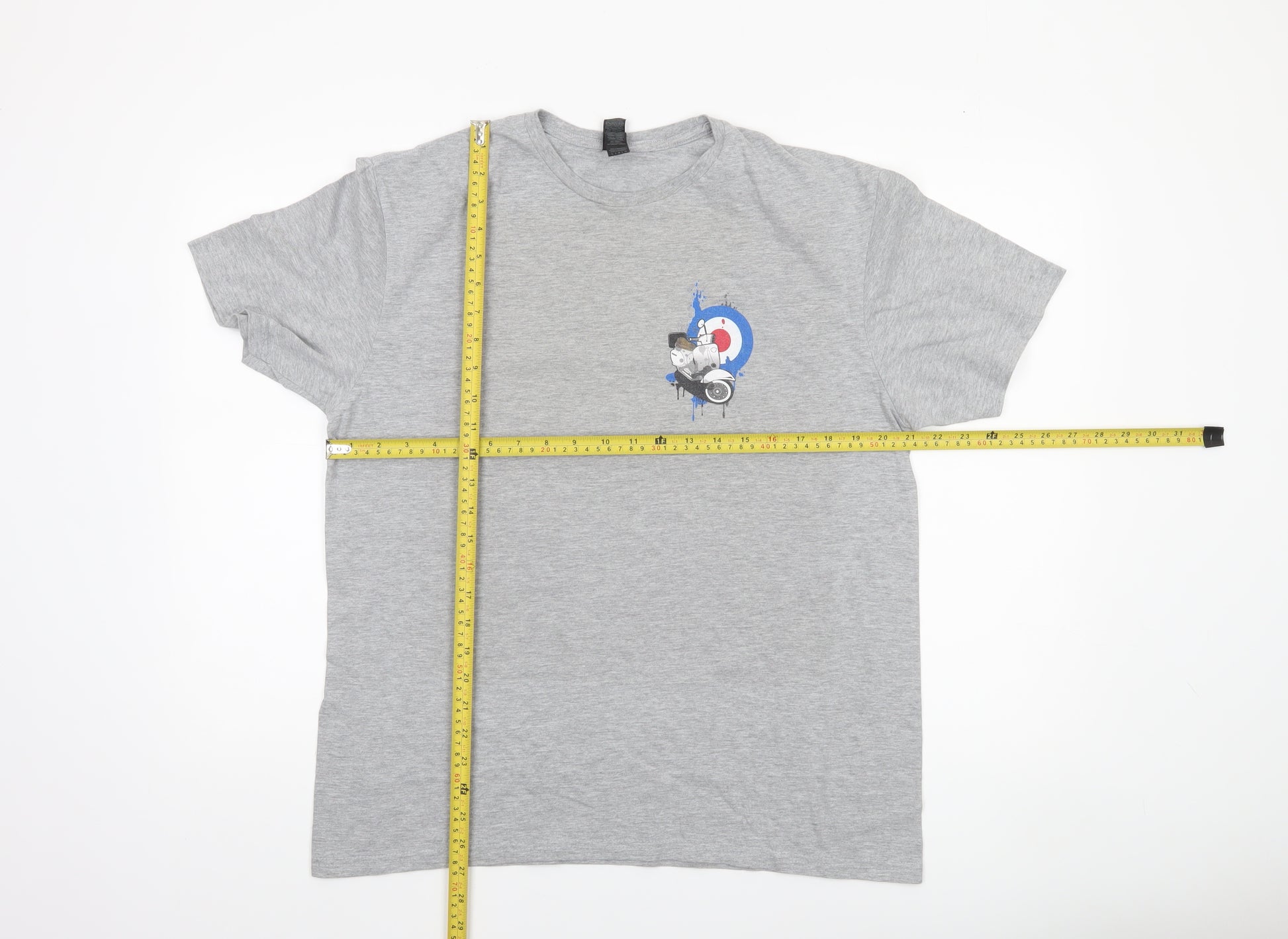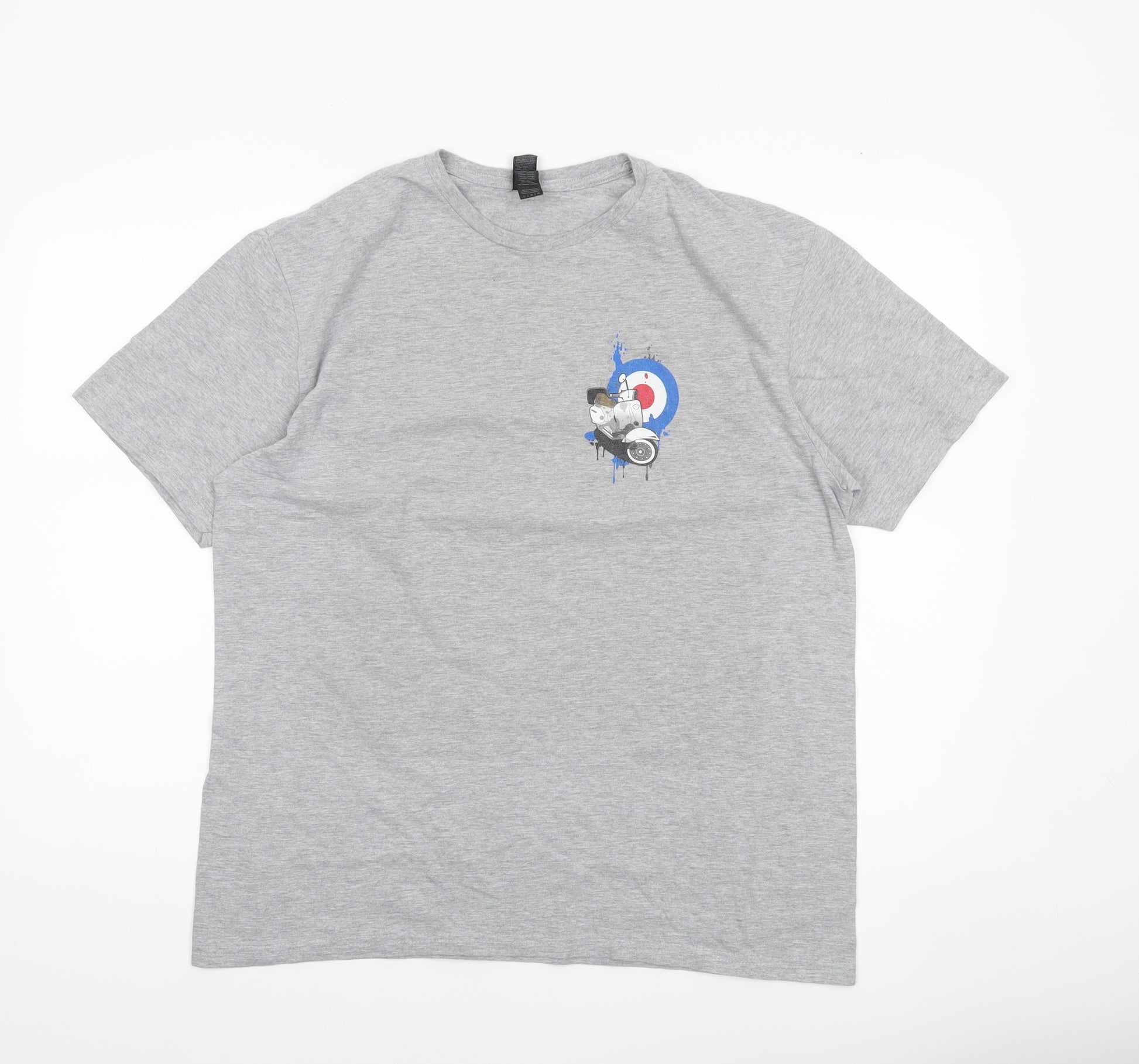 Men's Grey Graphic Motorcycle Retro Crew Neck T-Shirt Size L