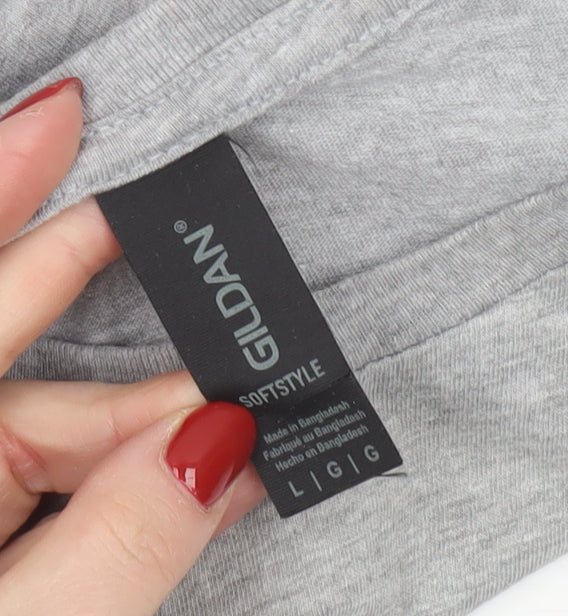 This Gildan Softstyle men's grey graphic T-shirt combines a timeless design with modern comfort, perfect for casual wear in every season. Crafted from a soft blend of 90% cotton and 10% polyester, the fabric offers a lightweight and breathable feel, ideal for spring, summer, and autumn. The shirt features a modern crew neckline and a relaxed regular fit, providing comfort and ease of movement for everyday activities. Its short sleeves and jersey fabric construction ensure a smooth texture and good flexibility, whether layered or worn on its own. The stylish grey base is accented with a striking retro motorcycle graphic design, giving it a bold yet understated appeal that fits effortlessly into any casual wardrobe. This graphic print detail adds a touch of personality, nodding to both classic moto culture and urban style. The logo accent reflects Gildan’s reputation for quality and comfort. Machine washable for easy garment care, this T-shirt is designed with durability and practicality in mind, ensuring it retains its shape and softness after multiple wears. The breathable jersey fabric helps maintain comfort throughout the day, making it suitable for leisurely activities, social events, or layering under jackets during cooler weather. This item is in excellent pre-loved condition, showing only minimal signs of previous wear and maintaining great overall quality. A versatile wardrobe essential, it’s perfect for men who appreciate comfort with a touch of retro charm. Whether paired with jeans, joggers, or casual shorts, this Gildan T-shirt fits effortlessly into a variety of styles and occasions. Ideal for anyone seeking a comfortable, stylish, and durable T-shirt, this piece represents great everyday wear value from a trusted brand. Secure this classic Gildan men's graphic T-shirt to add a cool, easygoing staple to your wardrobe collection today.