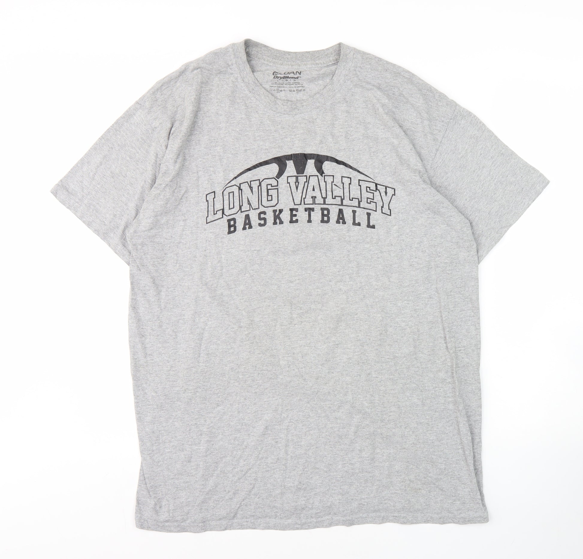 Enhance your casual wardrobe with this Gildan Men's T-Shirt. Crafted from a comfortable blend of cotton and polyester, this breathable jersey fabric tee is perfect for the sports enthusiast. Featuring a stylish crew neck and short sleeves, it promises an easy fit for all-day wear. The striking graphic print and logo accents make it an ideal choice for summer outings, ensuring you stand out in style. Despite being pre-owned, it remains in excellent condition with no visible flaws. Machine washable for effortless care, this grey t-shirt can be your go-to option for a sporty and relaxed look. Ideal for those who value comfort and style without compromising on quality.