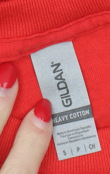 Elevate your casual wardrobe with this striking men's T-shirt from Gildan. Styled in a vivid red, this piece is perfect for music lovers and fans of band merchandise. Crafted from 100% cotton, this T-shirt offers both comfort and durability, made to withstand everyday wear while keeping you looking effortlessly stylish. Showcasing a dynamic graphic print on the front, the T-shirt celebrates the vibrant energy of live music and makes a statement wherever you go.Suitable for all seasons, this T-shirt features a classic crew neck and short sleeves, ensuring a comfortable fit and a timeless look. Whether you’re heading to a concert, hanging out with friends, or just relaxing at home, this tee ensures you’re dressed suitably for any informal occasion.Presented in size S, this T-shirt is tailored to fit men looking for a relaxed yet modern silhouette. The jersey fabric type is machine washable, making maintenance simple and convenient, while the successful combination of a heavy cotton blend ensures resilience and softness. Despite being previously admired, it remains in excellent condition, with no signs of wear or damage, ready to accompany you on countless adventures.This Gildan T-shirt is more than just a piece of clothing; it's a tribute to the flair and fun associated with music tours and live performances. Add it to your wardrobe for those moments you want to express your musical passion or as a special gift for a fellow music enthusiast. Grab yours today and hit the right note with your style!