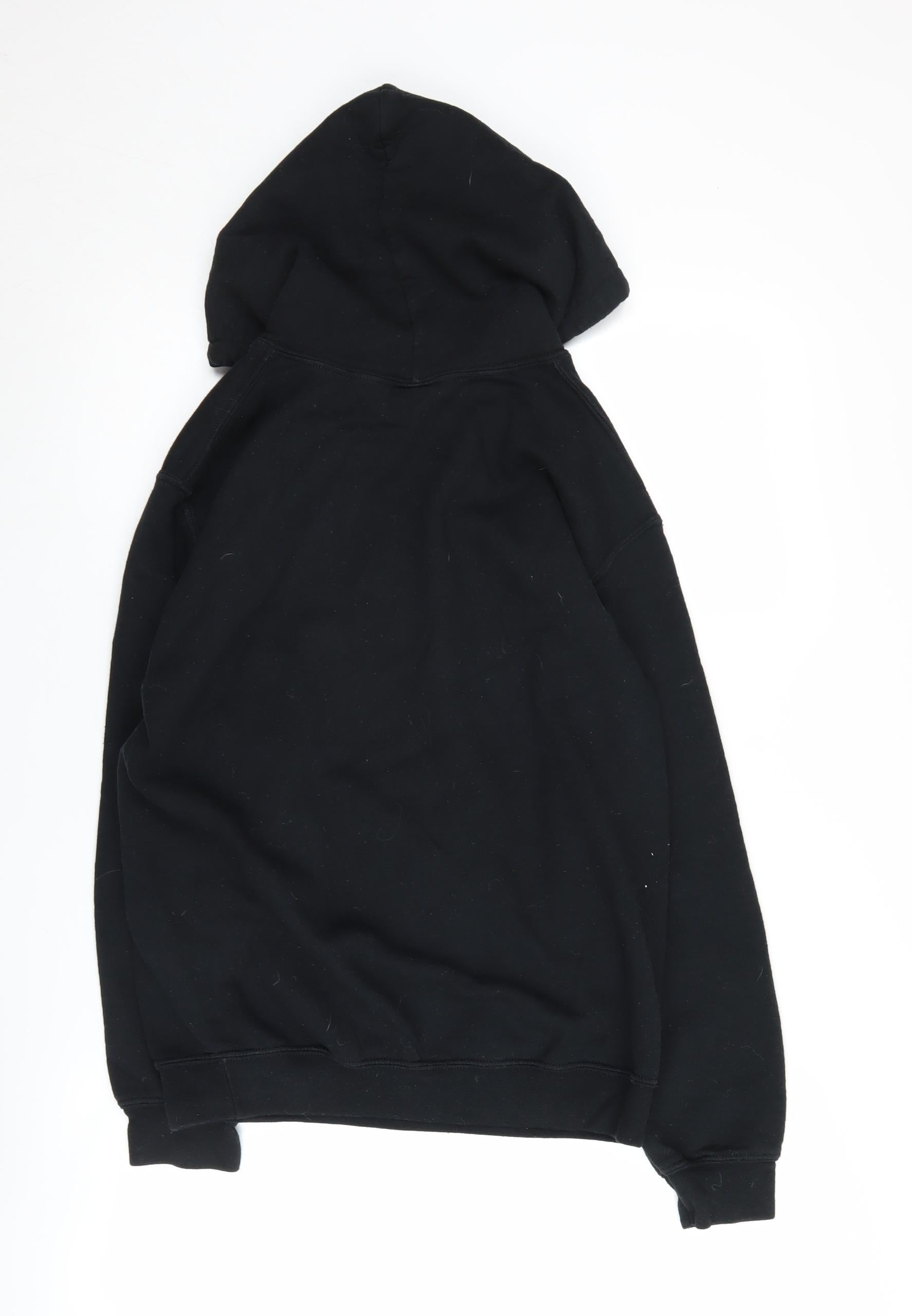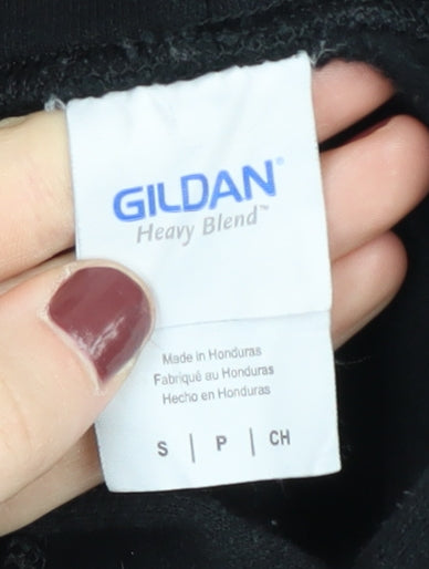 Introducing a stylish and comfortable Gildan hoodie perfect for colder seasons. This unisex adults' pullover comes in a versatile black colour and features a captivating TV theme graphic print, making it a standout piece in your casual wardrobe. Made with a blend of breathable cotton and durable polyester, this lightweight fleece hoodie ensures comfort and longevity. The drawstring closure and long sleeves provide extra warmth, while the regular fit accommodates various body types. Ideal for autumn, winter, and spring, this hoodie is perfect for everyday casual wear. Easy to care for with machine washable fabric, it's a practical addition to any wardrobe. Don't miss out on the opportunity to own this excellent condition Gildan hoodie with no visible damage. Grab yours today and enjoy cozy, stylish comfort.