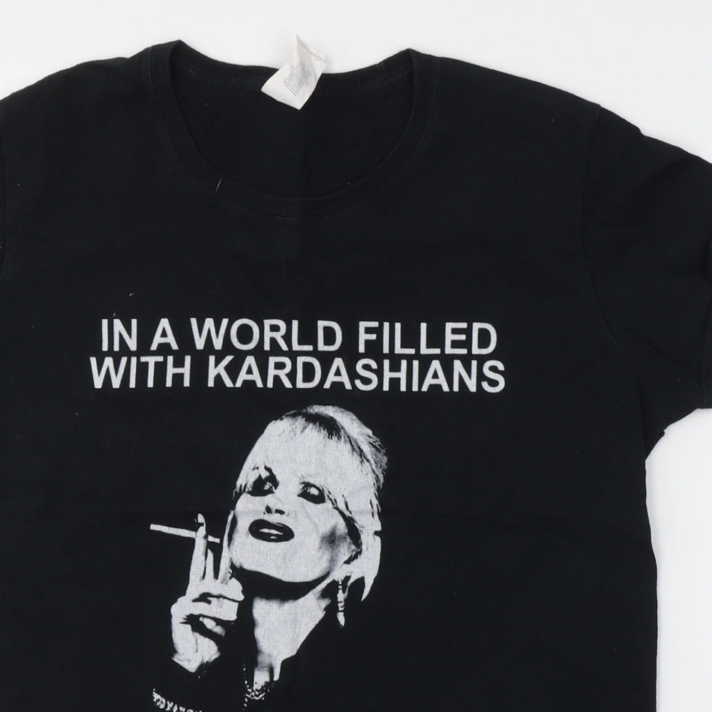 Womens Black Cotton Basic T-Shirt Size L Round Neck