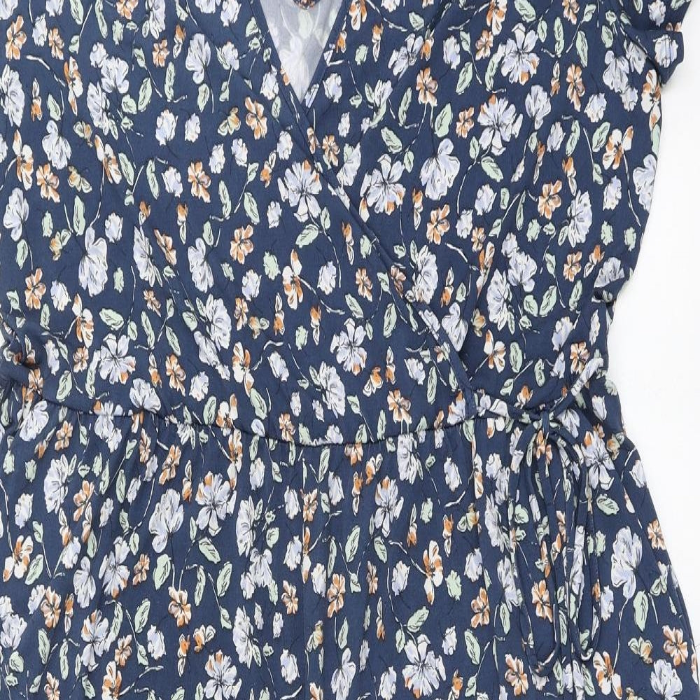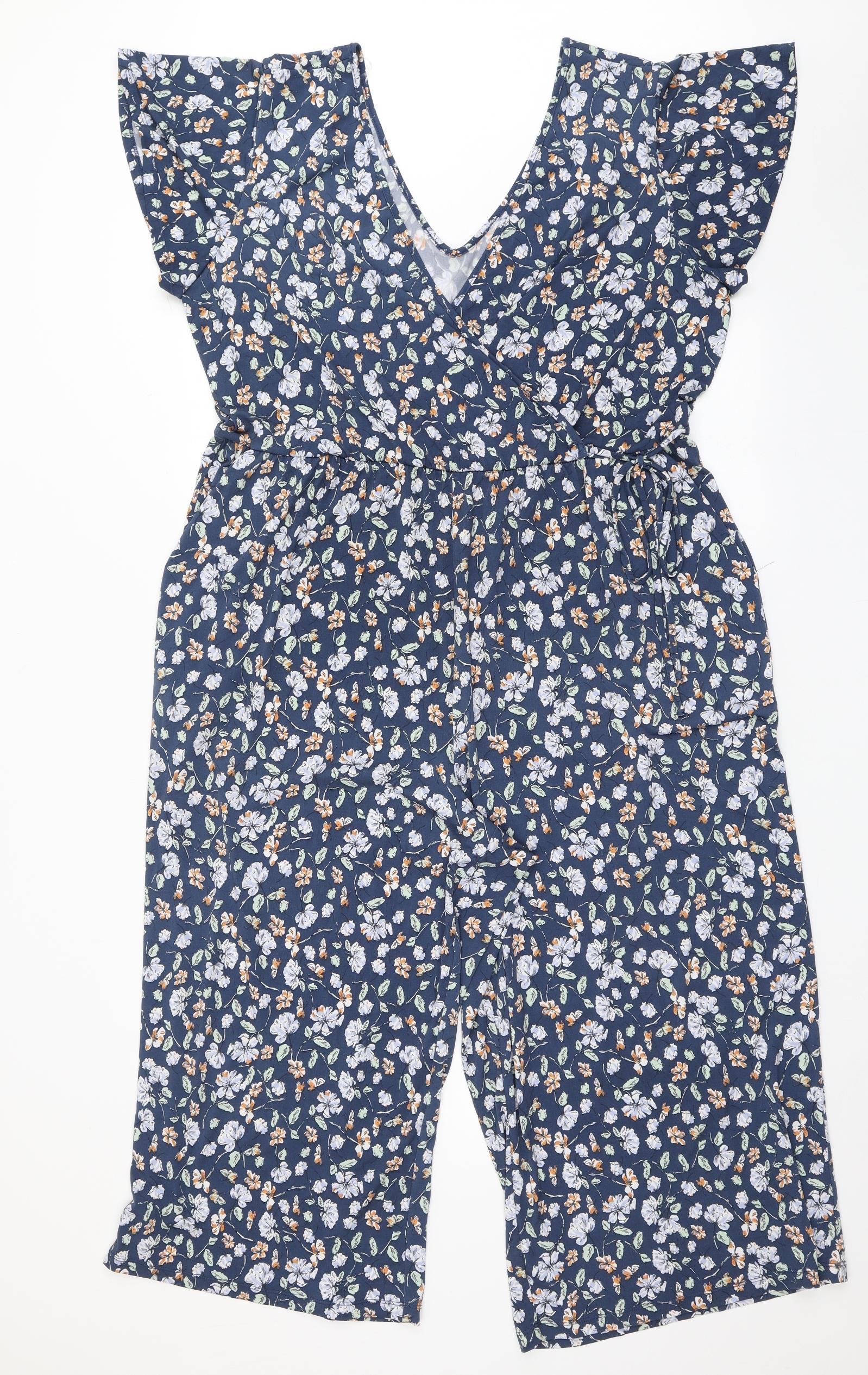 Womens Blue Floral Polyester Jumpsuit One-Piece Size 2XL L21 in Pullover - Cropped Leg