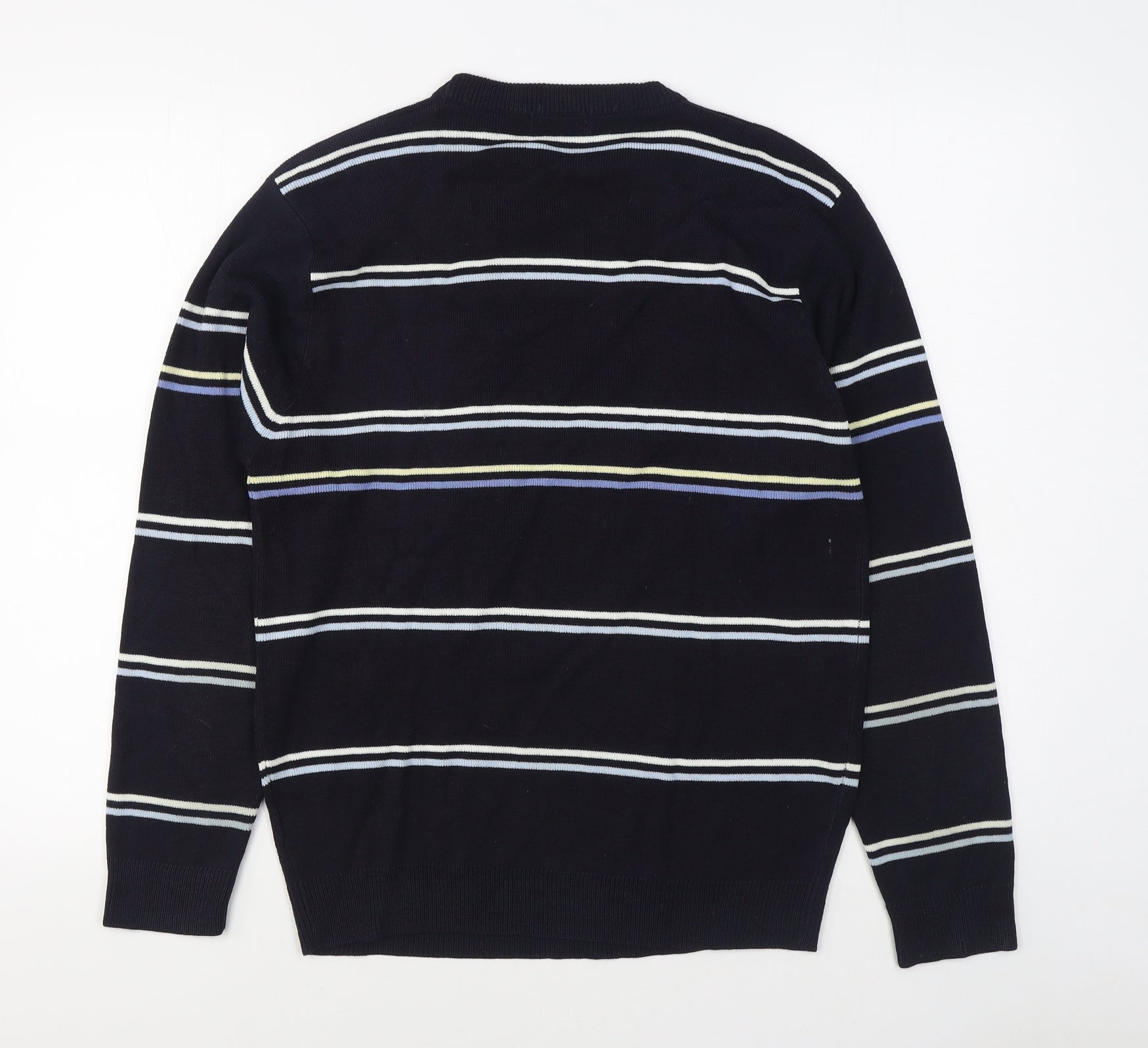 Mens Blue Round Neck Striped Acrylic Pullover Jumper Size S