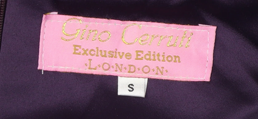 Indulge in the allure of elegant fashion with this stunning Gino Cerruti dress. Designed for women who appreciate classic styles with a contemporary twist, this purple number is both sophisticated and chic. Crafted from luxurious satin, its sleek, sleeveless design is complemented by ruched detailing, enhancing its form-fitting silhouette and highlighting your natural curves. Perfect for formal occasions, the rich tone of this dress ensures you'll stand out in any gathering. The strappy sleeves add a touch of modern flair, while the reliable zip closure ensures a flawless fit. Comfortable yet stylish, this dress serves as an essential piece for any fashion-forward wardrobe. Pair it with high-heeled sandals and a statement clutch for an effortlessly polished ensemble. With its excellent condition and first-rate craftsmanship, this dress is sure to become a treasured favourite.
