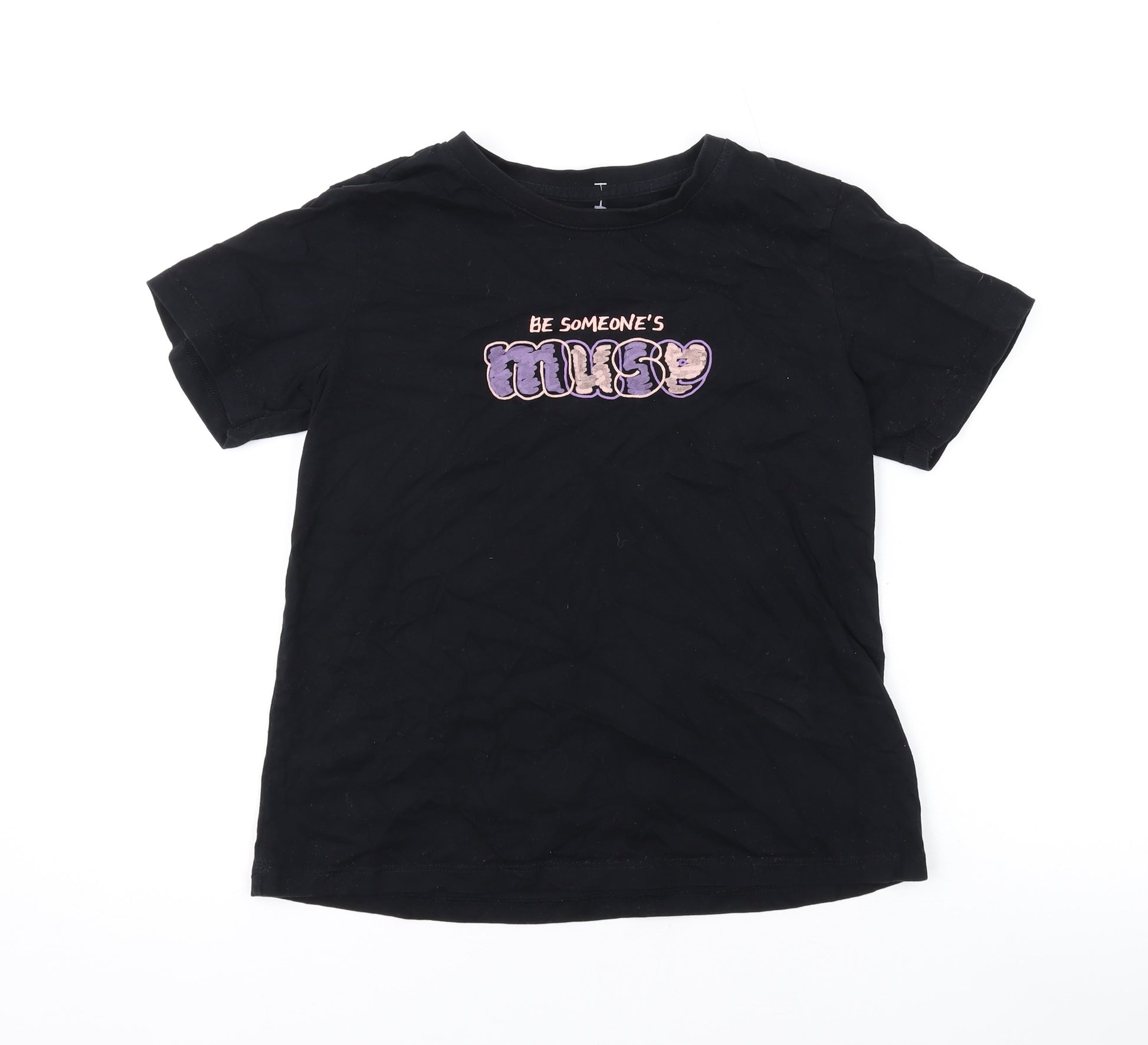 Womens Black Cotton Basic T-Shirt Size M Round Neck