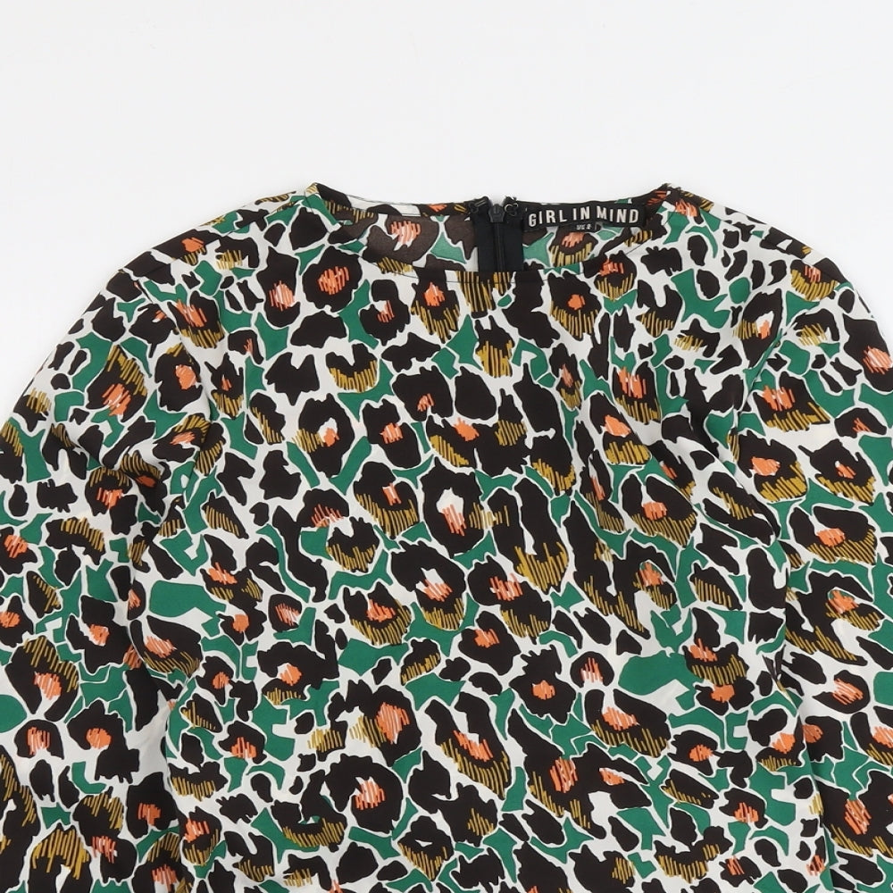 Womens Multicoloured Animal Print Polyester Basic Blouse Size 8 Boat Neck
