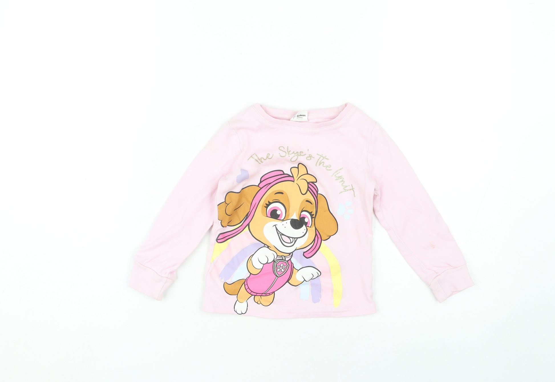 Let your little one dream in style with this adorable pink Paw Patrol pyjama top, designed for girls aged 3-4 years. Featuring their favourite character Skye, this top is part of a charming PAW Patrol character family. Crafted to offer both comfort and appeal, the graphic print design is perfect for young fans of the show. Designed for all seasons, this long sleeve pullover top provides cosy warmth, making it ideal for bedtime or lounging around the house. Although it lacks visible original sales tags, it remains in excellent condition with only minor marks visible on the front. Delight your child with this pyjama top that adds a touch of adventure to their nightwear collection. With its comfortable fit and adorable character graphics, it's sure to become a favourite bedtime garment. Grab this delightful PJ top now to make bedtime just as exciting as playtime!