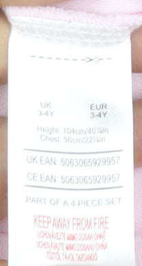 Girls Pink Pyjama Top, 3-4 Years, Long Sleeve