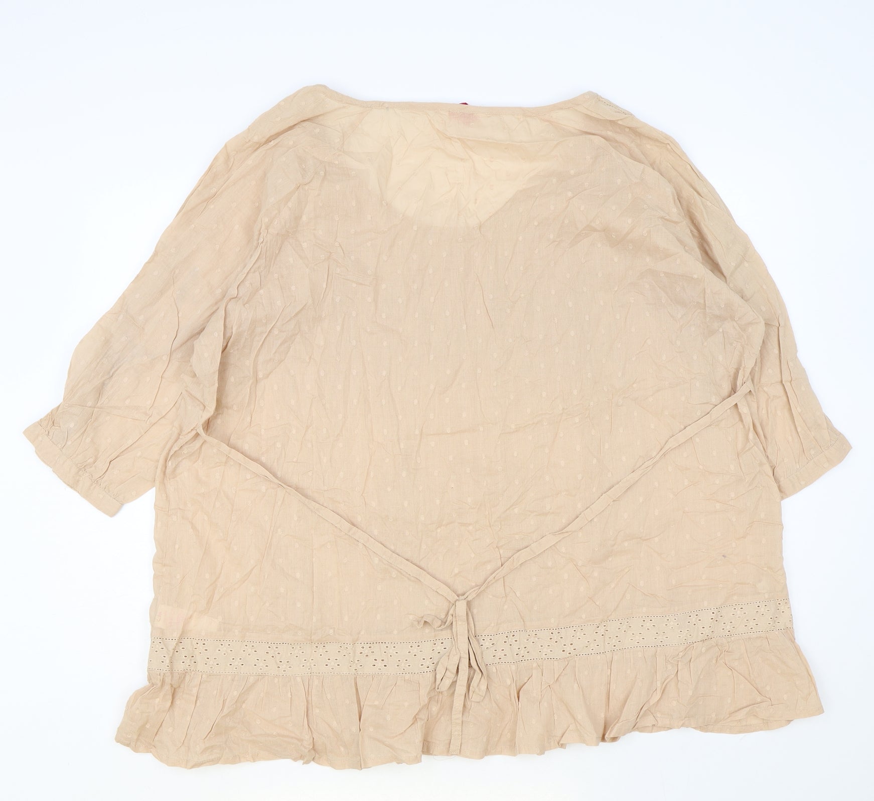 Womens Beige Cotton Basic Blouse Size 28 Round Neck