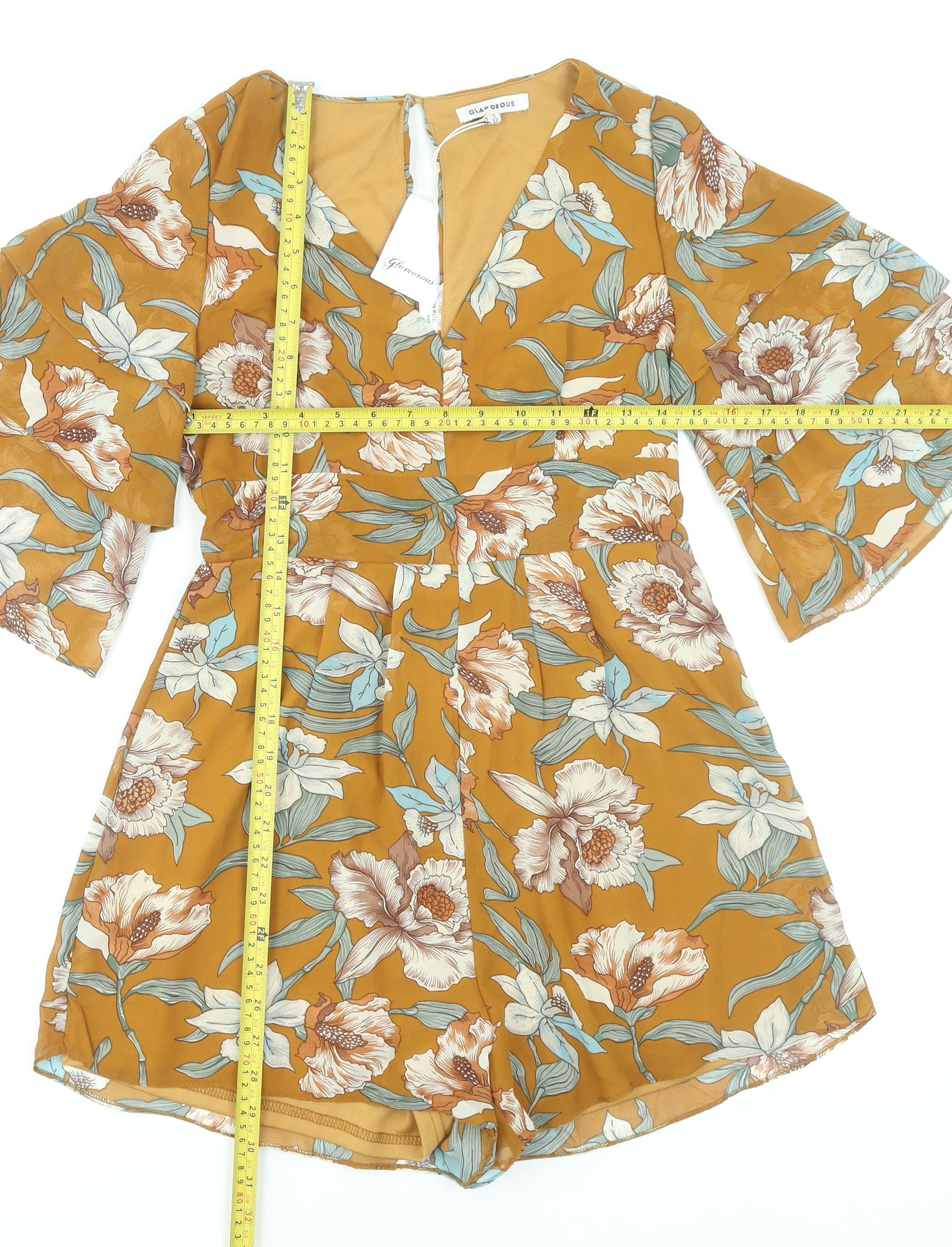 Women’s Brown Floral 3/4 Sleeve V-Neck Playsuit Size 12