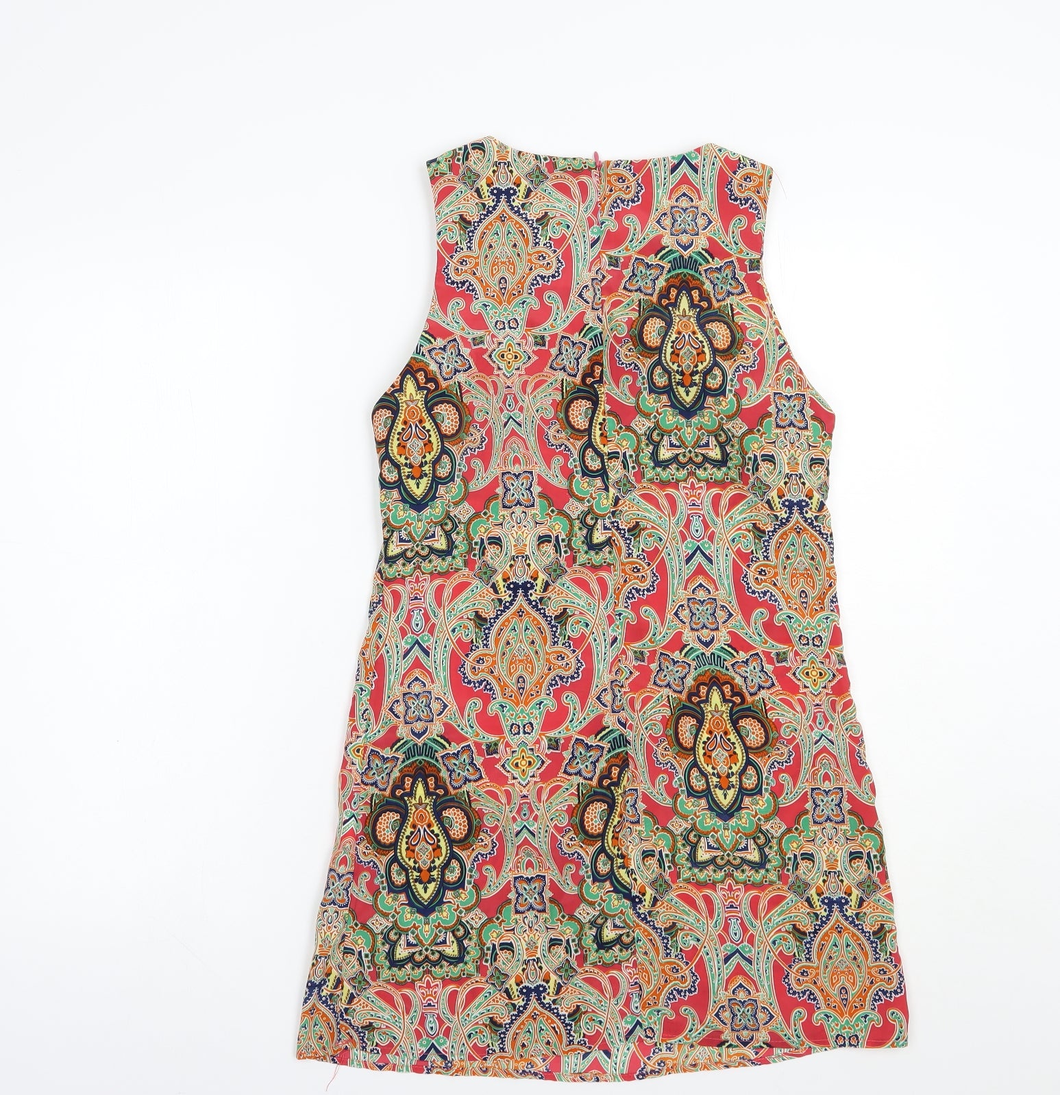 Womens Multicoloured Paisley Polyester Shift Size 8 Boat Neck Zip