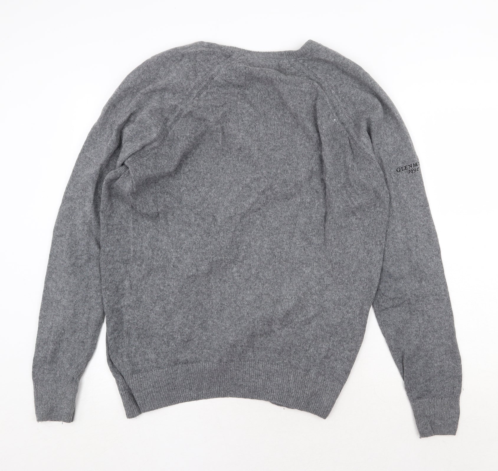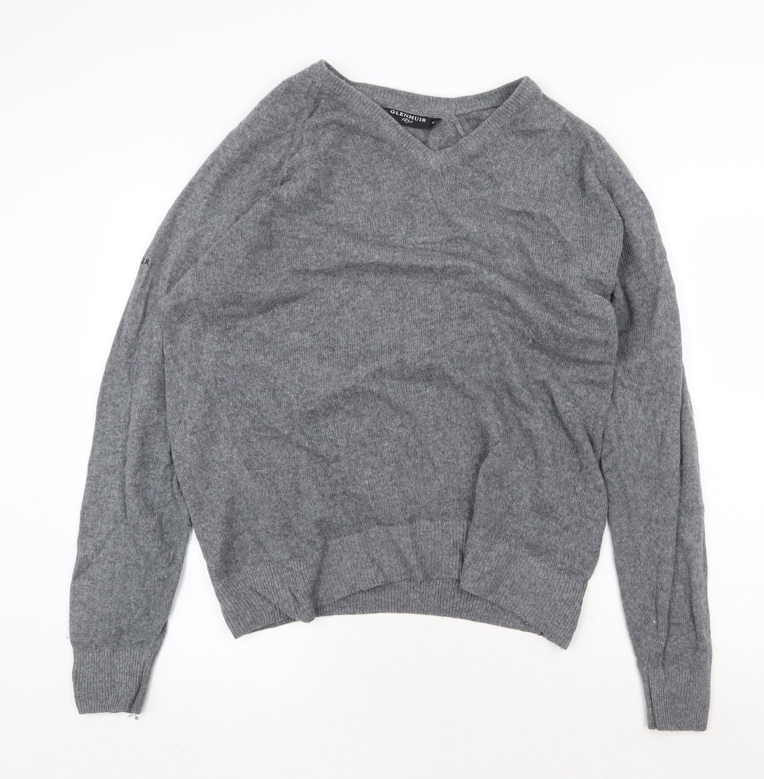 Mens Grey V-Neck Wool Pullover Jumper Size M Long Sleeve