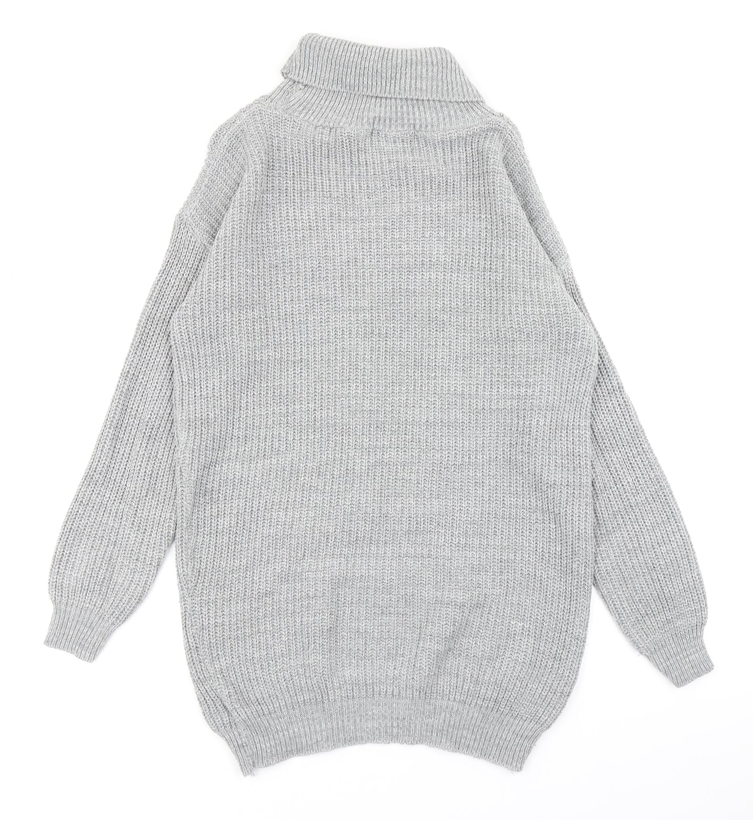 Quiz Womens Grey Acrylic Jumper Dress Size S Mock Neck Pullover - Ballooon sleeve