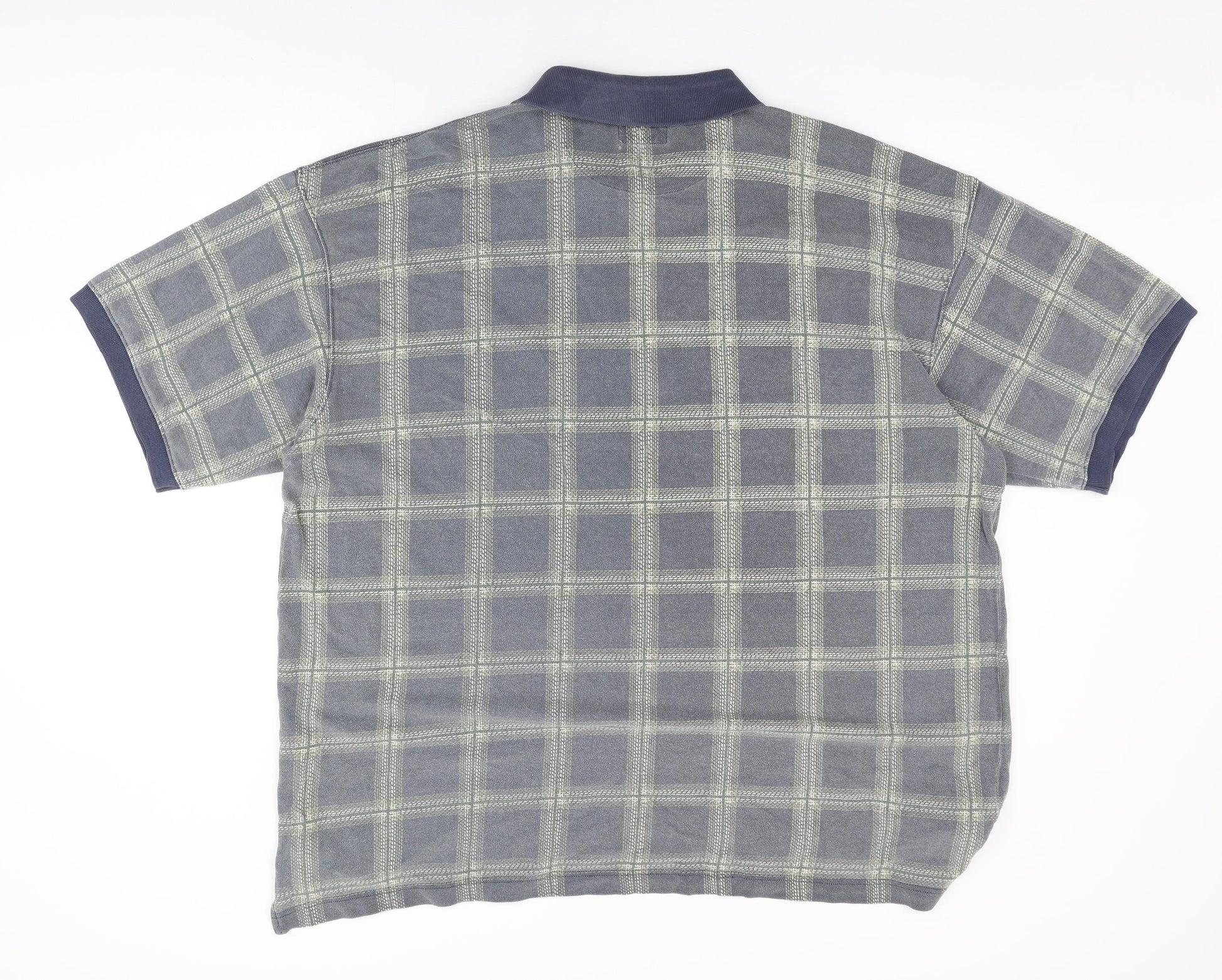 Mens Blue Plaid Cotton Polo Size L Collared Button