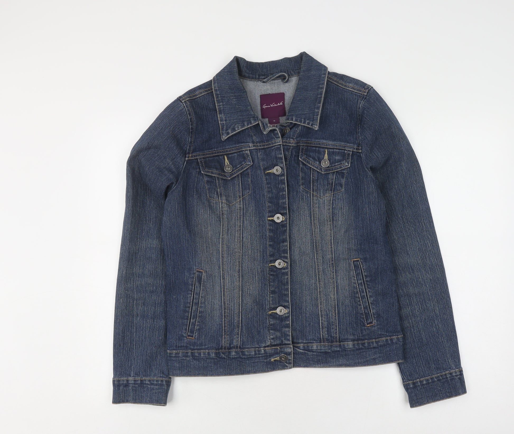 Elevate your casual wardrobe with this classic denim jacket from Gloria Vanderbilt. Designed specifically for women, this blue jacket combines timeless style with versatile functionality. Made from durable cotton, it offers comfort and breathability, making it an excellent choice for both spring and autumn seasons. The jacket features a regular fit with long sleeves and a collared neckline, ensuring a flattering silhouette for everyday wear.The button-up closure adds a traditional touch, while multiple pockets enhance its practicality for carrying essentials. This mid-length denim jacket accentuates a casual theme with simple accents and no elaborate patterns, allowing it to effortlessly complement various outfits. Whether you're running errands or enjoying a day out, this jacket provides a stylish layer that can adapt to different looks seamlessly.Machine washable for easy care, this jacket is in excellent condition aside from light fading, which adds to its vintage charm without compromising quality. Perfect for a laid-back occasion, this piece invites a casually chic vibe into your wardrobe, ready to be paired with your favourite jeans or a flowy dress. Don't miss the chance to add this iconic and functional denim jacket by Gloria Vanderbilt to your fashion collection.