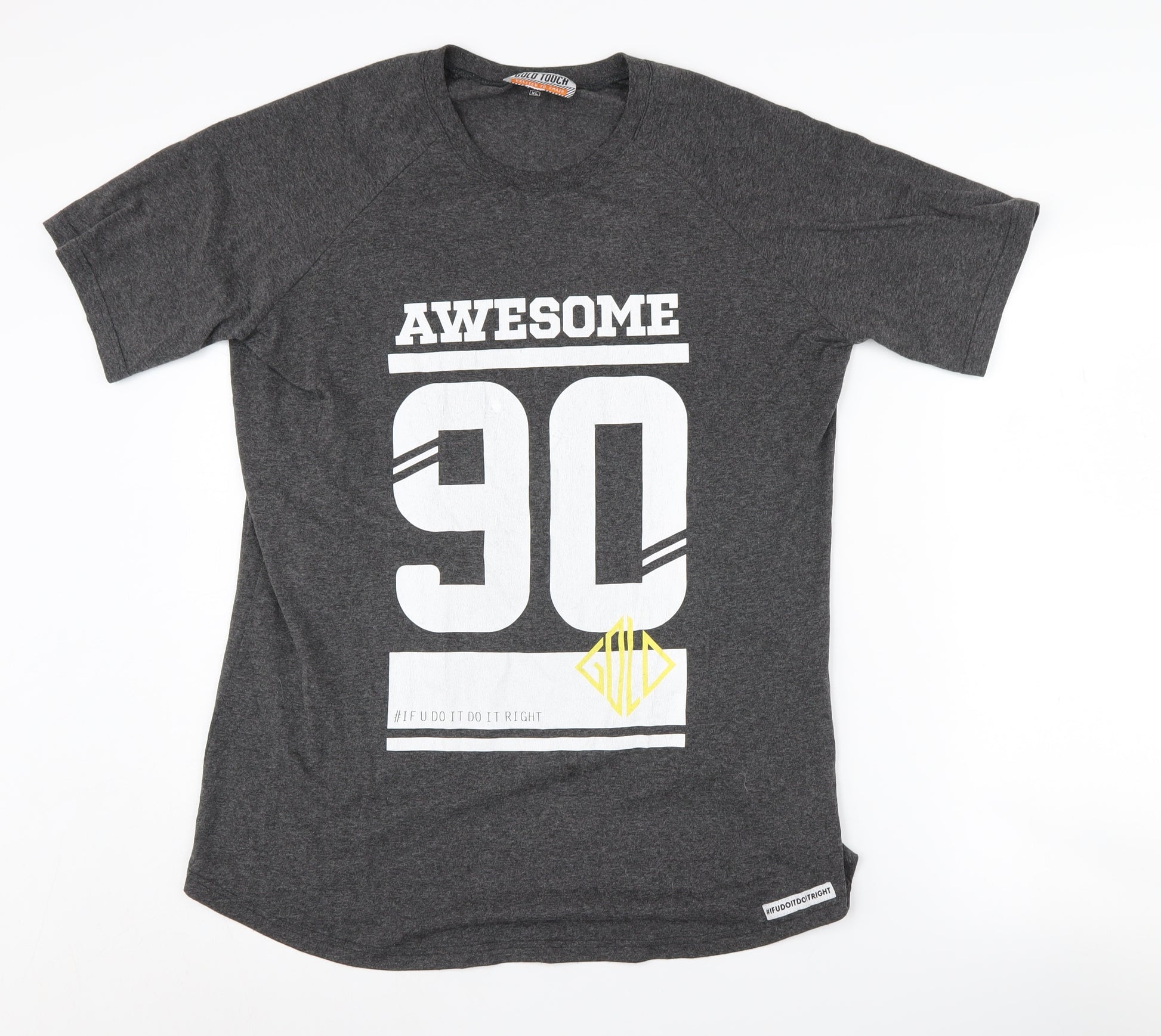 Step back in time with this Gold Touch Awesome '90s Grey T-Shirt. Crafted from a comfortable cotton and polyester blend, this shirt features a striking graphic print that pays homage to the vibrant '90s. Designed for the modern man, it offers a regular fit and a classic crew neck, ensuring comfort and style all day long. Perfect for casual outings or lounging at home, this t-shirt is machine washable, making it easy to care for and ideal for all seasons. Whether you're a fan of nostalgia or simply appreciate unique graphic designs, this shirt is a must-have addition to any wardrobe.