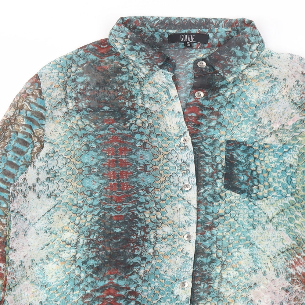 Womens Multicoloured Animal Print Polyester Basic Button-Up Size S Collared - Snake Print