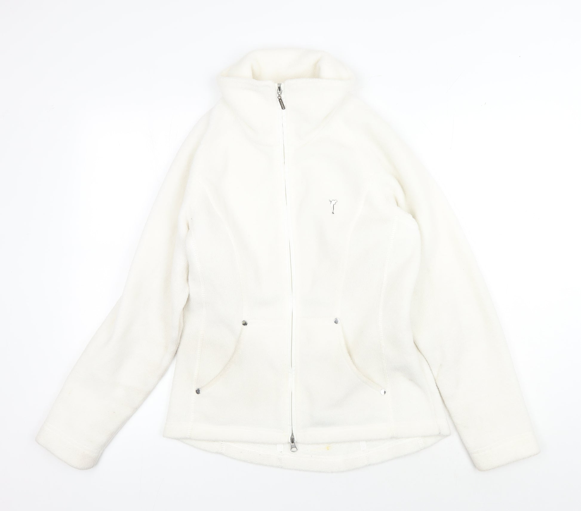 Stay cosy and stylish this winter with the Golfino Women's White Fleece Jacket. Designed for comfort and versatility, this mid-length, basic style jacket offers a smooth blend of simplicity and functionality. An ideal piece for casual occasions, it's perfect for keeping warm during the cooler months. The jacket is crafted from 100% polyester fleece, ensuring softness and durability. With a classic white hue and a clean, no-pattern design, it easily complements any outfit. The full zip closure and practical pockets provide convenience while the subtle logo accent adds a touch of elegance. This regular fit jacket is machine washable, making it easy to care for. Whether you're heading out for a walk or running errands, this jacket is your go-to layer. Invest in this essential piece for a timeless addition to your wardrobe.