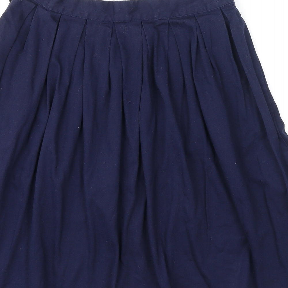 Womens Blue Polyester Pleated Skirt Size S Button