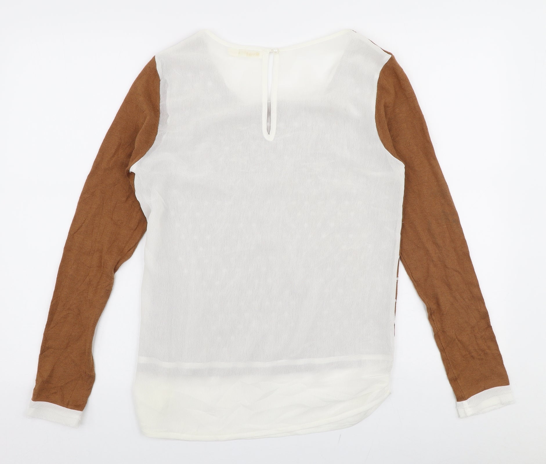 Womens Brown Round Neck Cotton Pullover Jumper Size S - Chiffon back