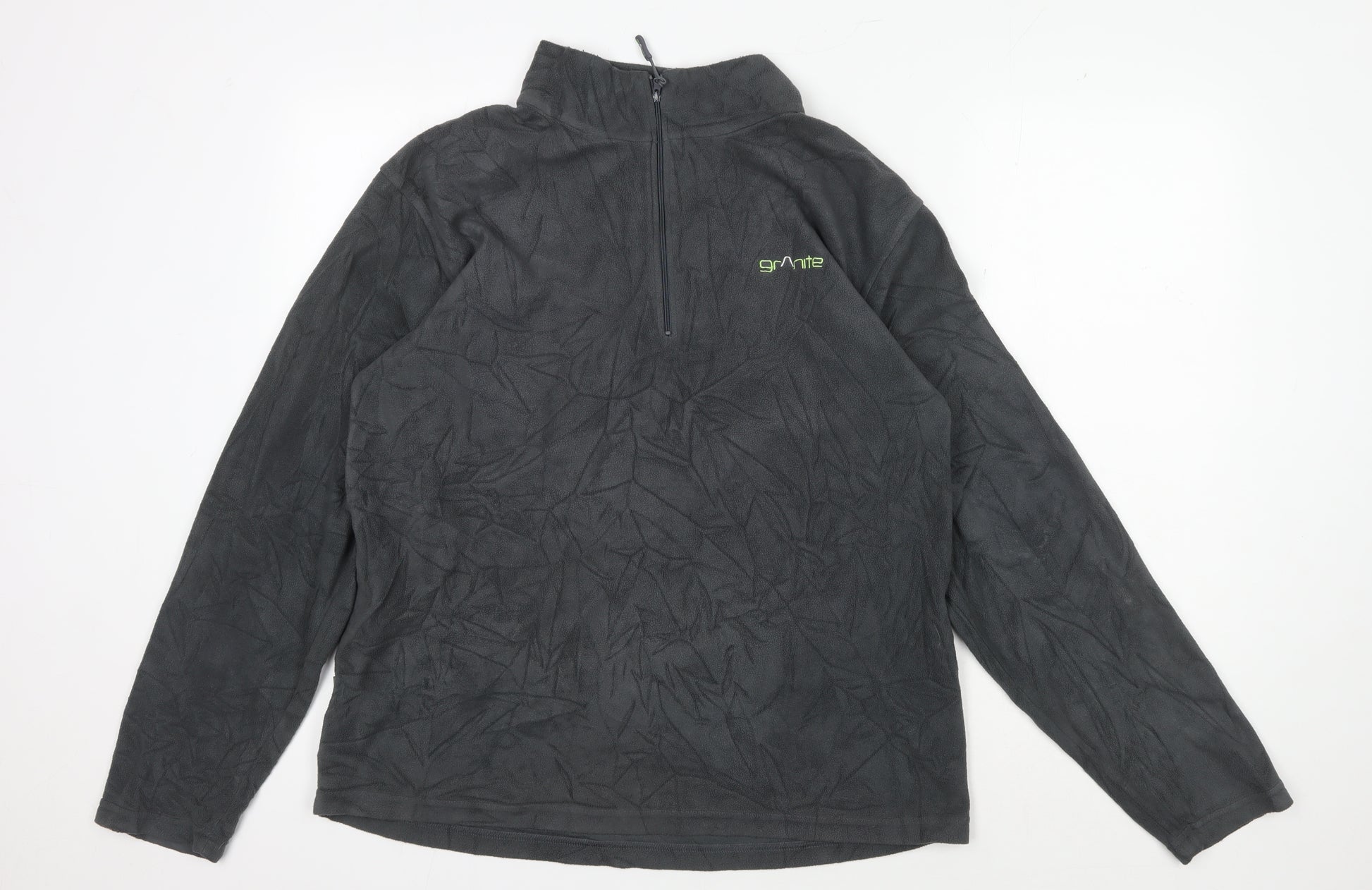 Stay comfortable and stylish with this Granite Outdoor Men's Pullover Fleece Sweatshirt. Perfect for Autumn and Winter, the lightweight fleece fabric offers warmth and comfort without the bulk. Featuring a quarter zip closure and high neck design, it's ideal for layering on chilly days. The geometric pattern adds a touch of modern style, while the logo accent gives it a subtle branded touch. Designed for regular fit, this black sweatshirt is versatile enough for both casual outings and outdoor activities. Whether you're hiking, walking in the park, or simply lounging at home, this Granite pullover promises to keep you comfortable throughout the day. Machine washable for easy care and crafted from a blend of polyester and elastane, it's a practical and durable addition to your wardrobe. With no visible signs of wear, this sweatshirt is in excellent condition, ensuring you'll look good and feel even better.