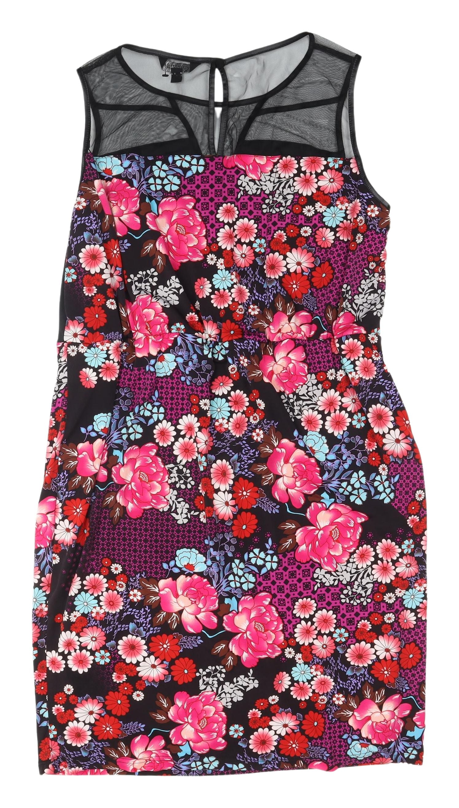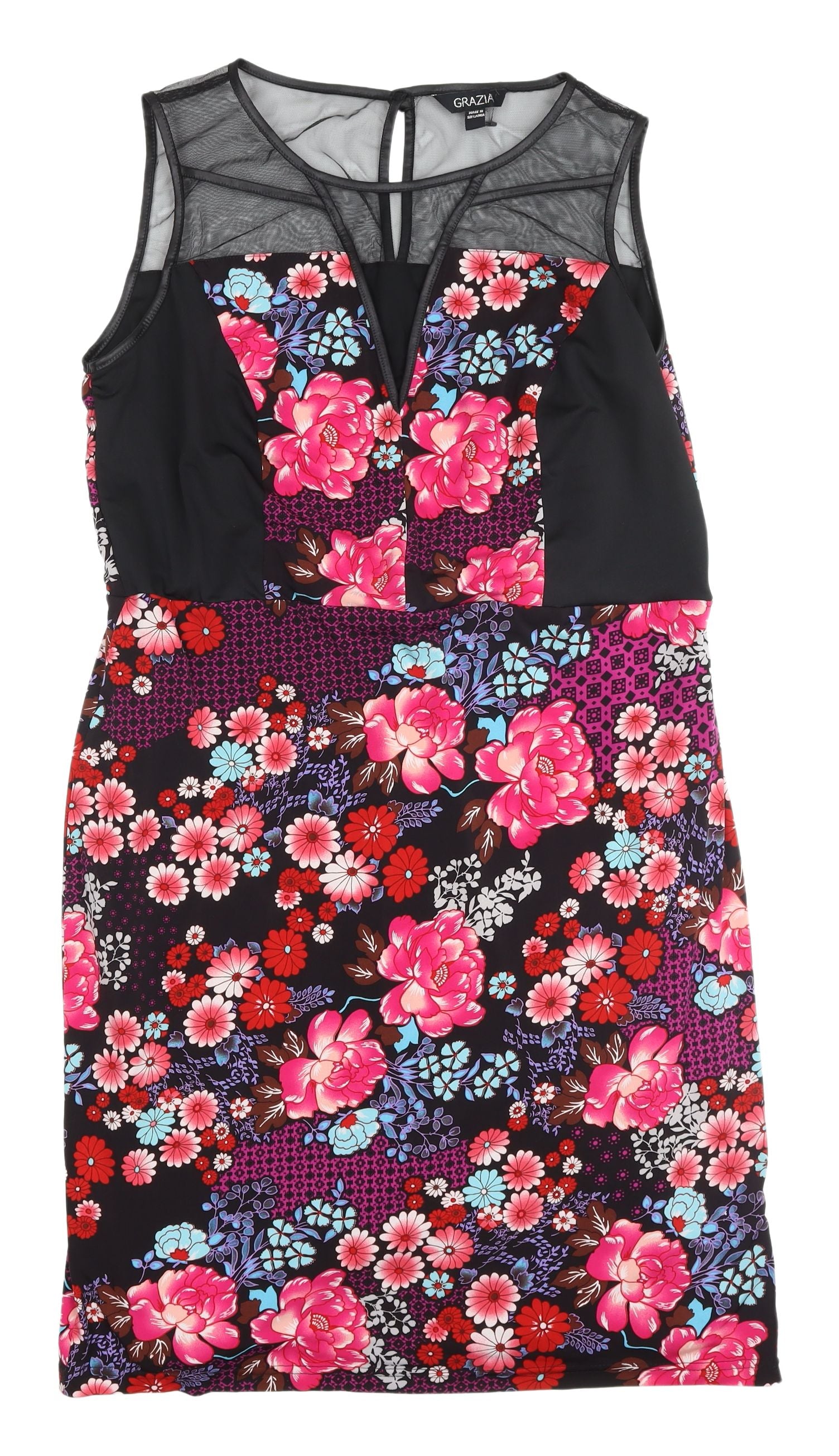 Introducing the stunning Grazia floral print dress, a vibrant piece perfect for adding a pop of colour to your wardrobe. Crafted from a comfortable jersey fabric blend of 94% polyester and 6% elastane, this dress offers a flattering fit while ensuring all-day comfort. Featuring a sleeveless design, it makes an excellent choice for warmer days and can easily be layered for cooler weather. The multicoloured floral pattern instantly brings a lively touch, ideal for casual outings or even a chic event. Its regular size type and flexible material ensure an easy fit for women seeking effortless style. Made in the reliable Grazia fashion, this dress requires minimal care, as it is machine washable, making it both practical and stylish. The dress arrives in excellent condition, ensuring satisfaction and a lasting addition to your collection. Perfect as a standalone summer piece or layered for autumn days, the Grazia floral dress marries style with functionality.