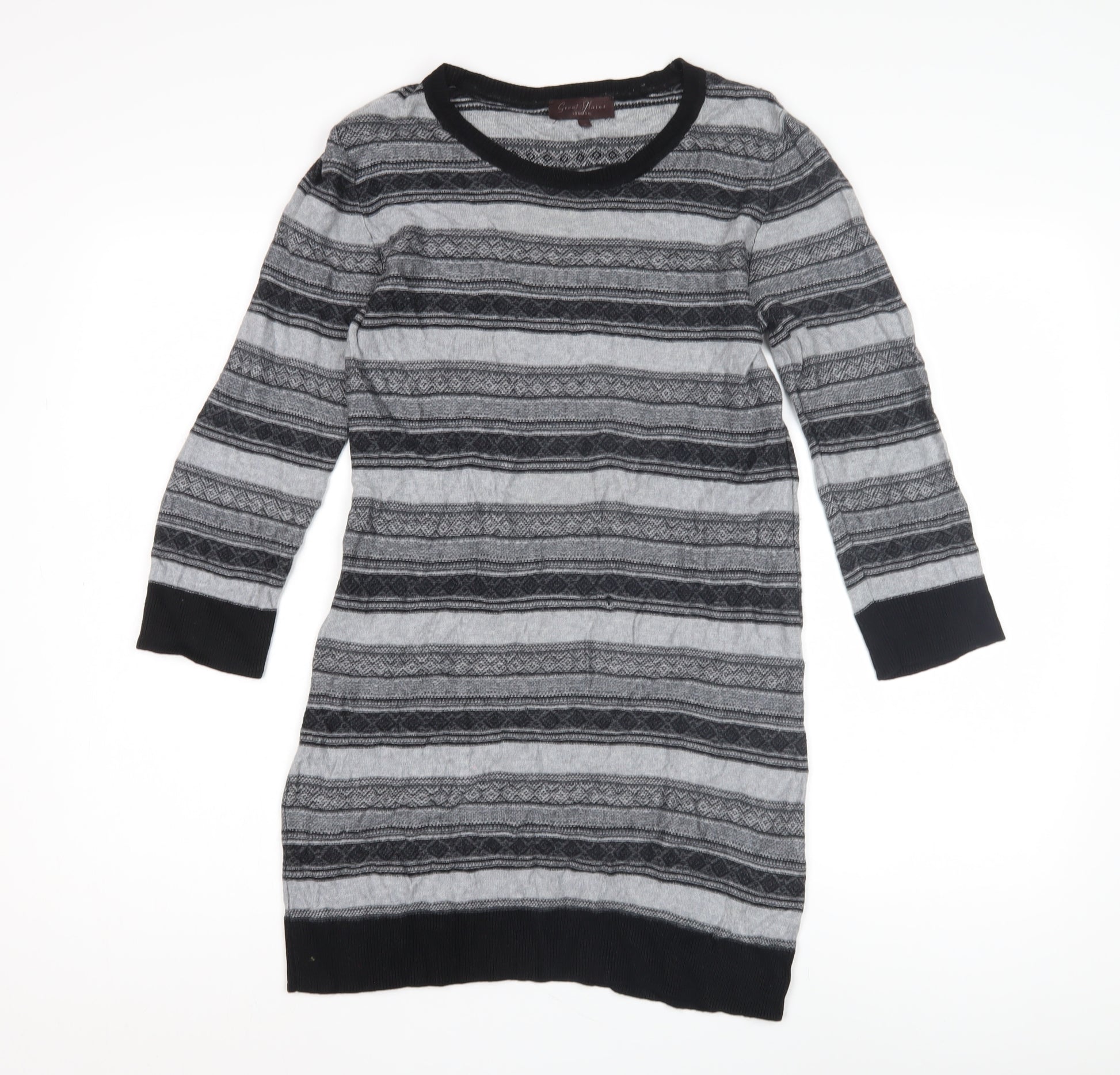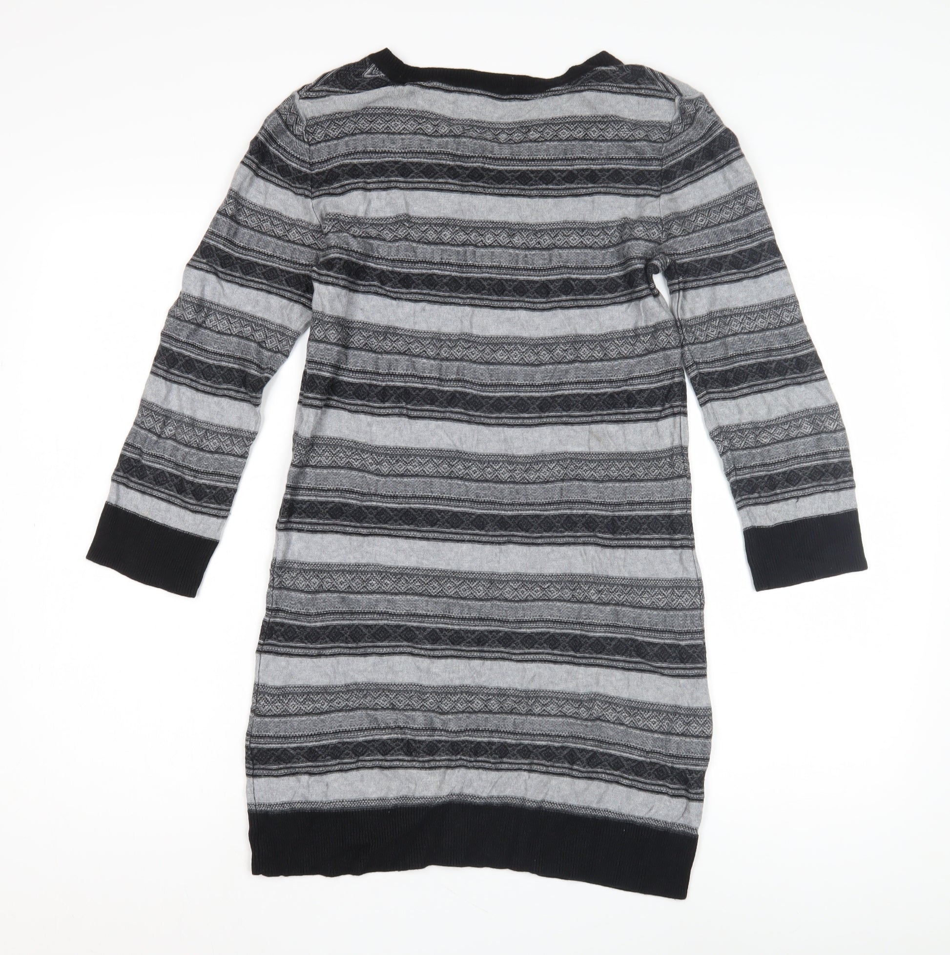 Step into cosy style this season with this Great Plains women's jumper dress, perfect for those chilly autumn and winter days. The dress comes in a versatile grey hue with a classic Fair Isle pattern, offering both comfort and elegance. Made from a warm and comfy wool blend, this dress promises to be your go-to for layering during cooler weather, providing that extra warmth without compromising on style. Featuring a round neckline and three-quarter sleeves, this dress strikes a balance between casual and sophisticated, making it ideal for multiple settings. Its design caters perfectly to casual outings, keeping you comfortable and fashion-forward. Whether you are heading to a brunch or just lounging at home, this dress fits the occasion. Although currently in excellent condition, the dress does not come with original tags. It ensures you are suited for all those last-minute outings or planned events with ease. Pair it with boots or trainers for a laid-back look, or dress it up with heeled boots for a more polished vibe. Don't miss the chance to add this elegant piece to your wardrobe today!
