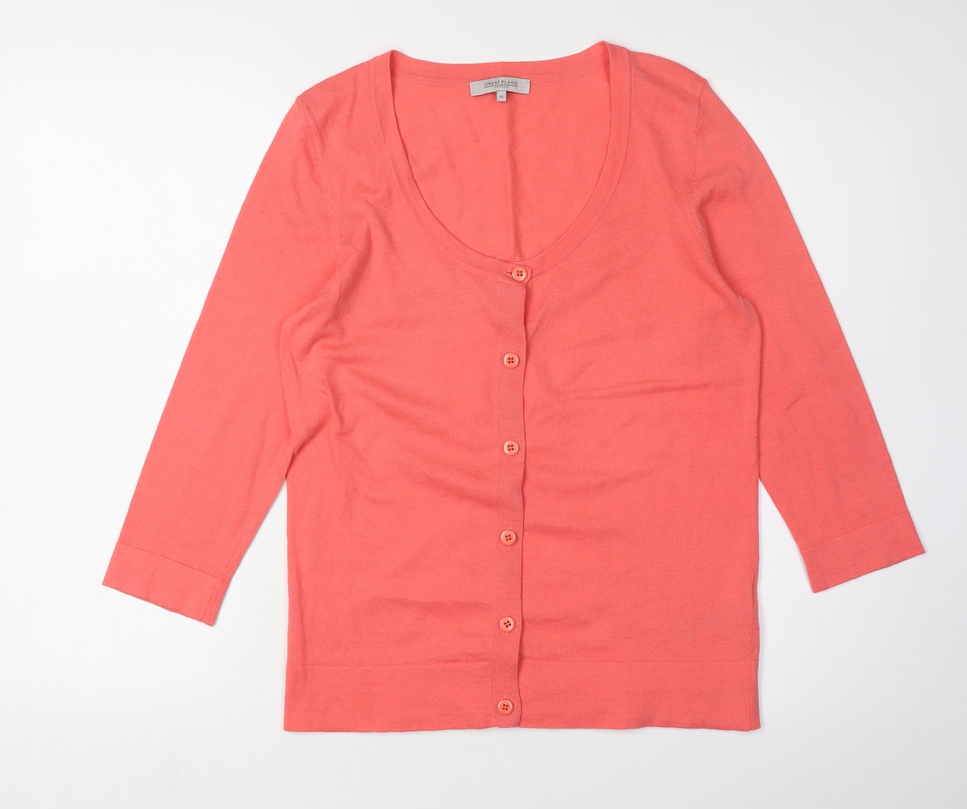 Embrace style and comfort with this sleek pink cardigan from Great Plains, perfect for any casual occasion. Crafted from a blend of 60% cotton, 30% polyester, and 10% viscose, this cardigan offers a soft, breathable feel ideal for all seasons. The tight-knit fabric provides a smooth texture, while the button accents add a touch of elegance. The cardigan features a scoop neckline and 3/4 sleeves, making it a versatile addition to any wardrobe. Designed for a regular fit, it suits a range of body types. Pair it with jeans or skirts for a chic look. In excellent condition, this cardigan has no visible flaws, ensuring you both quality and style. Please note that it's machine washable for easy maintenance. Add this staple piece to your collection and enjoy its timeless appeal.