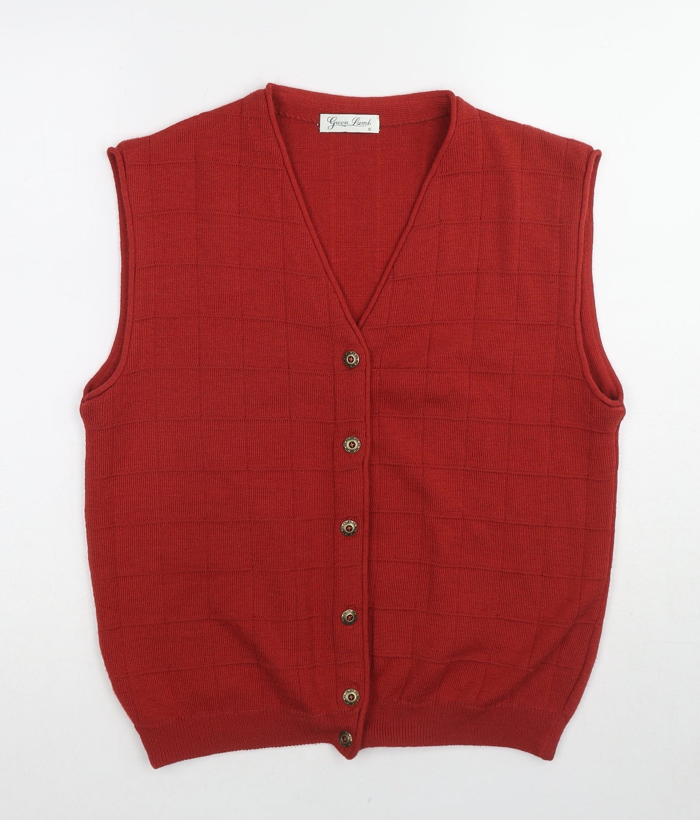Womens Red V-Neck Check Polyester Vest Jumper Size S