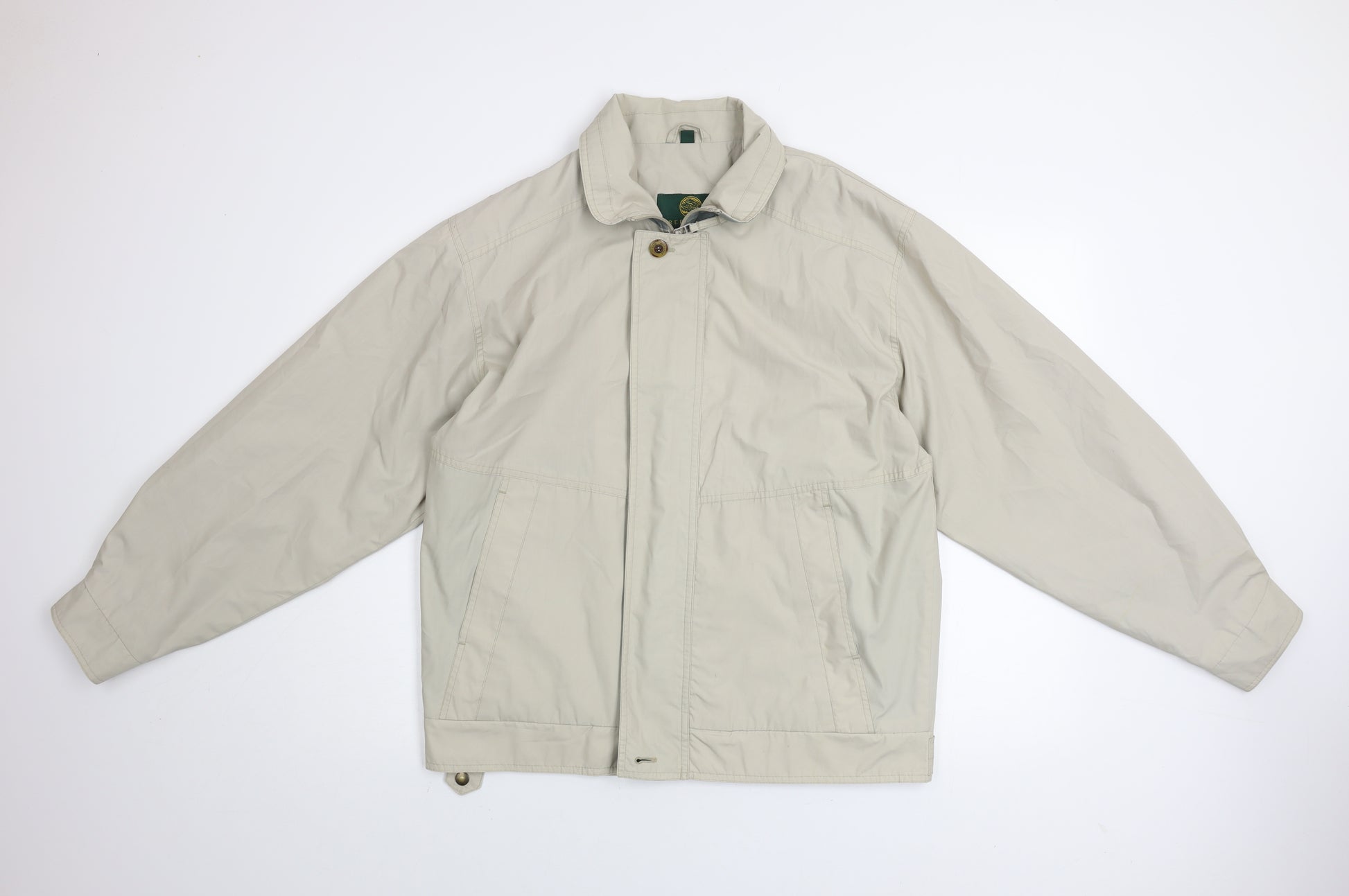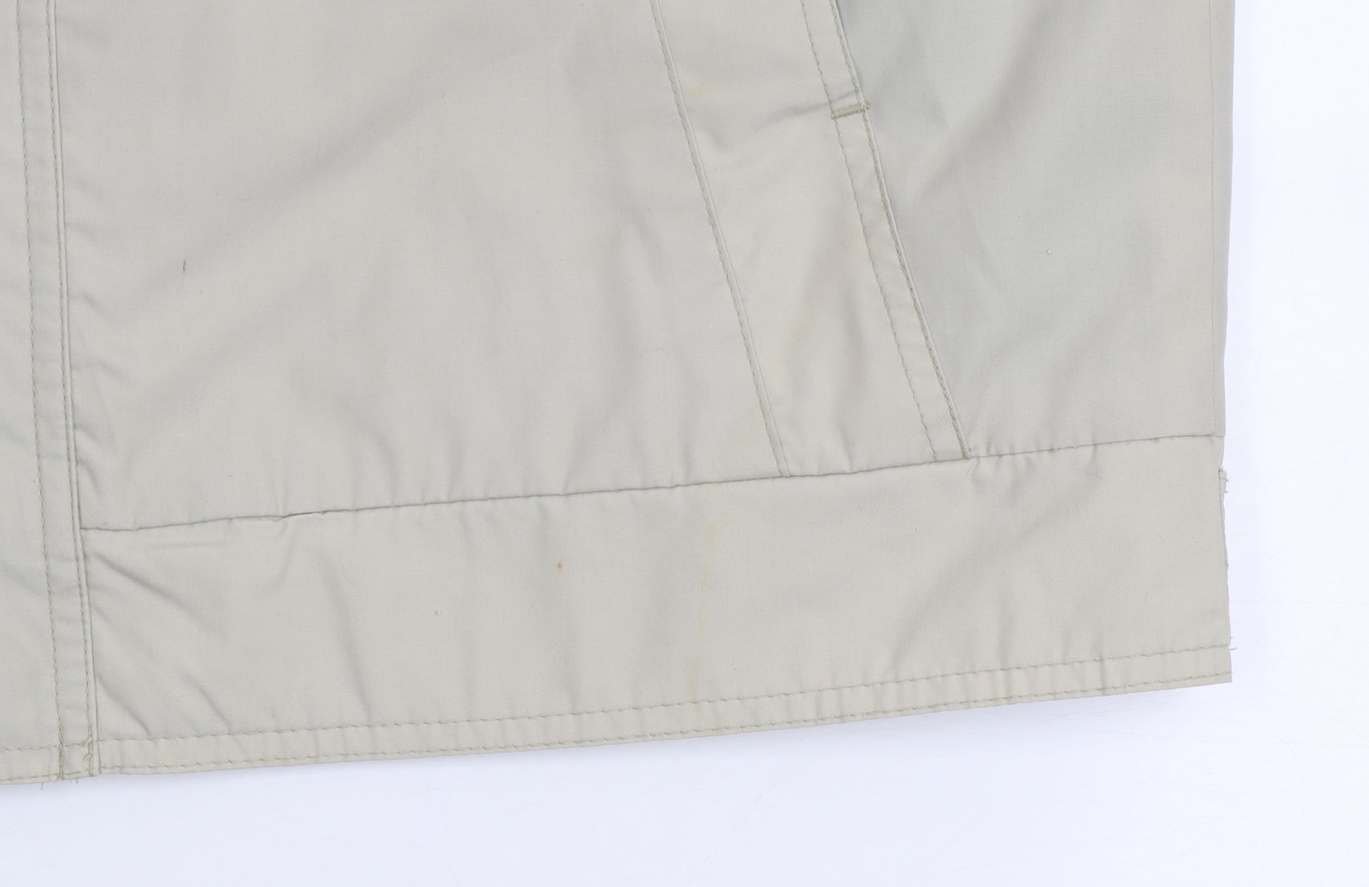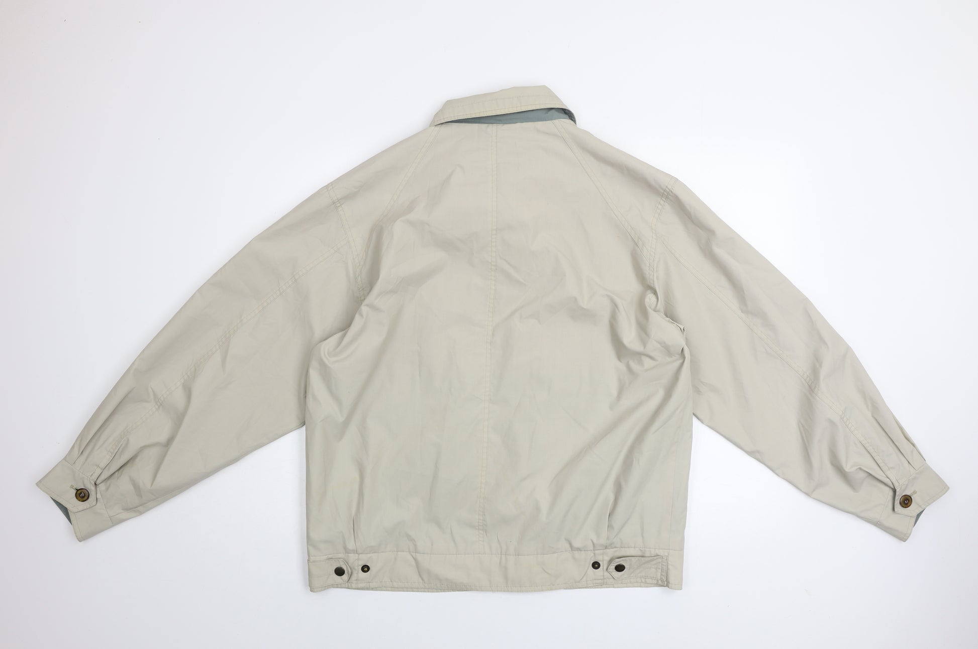 This Greenwood men's beige basic jacket offers a timeless look that combines comfort with everyday practicality. Crafted from a durable blend of cotton and polyester, it provides a lightweight yet practical layer for transitional seasons such as spring and autumn. The soft beige colourway gives it a versatile and understated charm, suitable for both casual outings and smart-casual settings. Designed with a full-zip front that fastens securely under a button placket, this jacket ensures dependable coverage against brisk breezes. The stand-up collar adds a subtle touch of structure and style, while the twin front pockets lend both functionality and a relaxed aesthetic. A polyester and cotton lining provides extra comfort and an easy fit for regular wear. The structure is neat, practical, and purpose-built for movement and ease. This midweight jacket suits activities like walking, layering over casual shirts, or teaming with chinos for a relaxed urban look. Subtle button and zip accents complement its simple, classic design. Although showing a faint mark near the lower hem, the jacket remains in very good pre-owned condition, retaining its overall clean presentation and sturdy feel. With its classic fit and neutral colour, the Greenwood Basic Jacket in size M is ideal for men seeking a dependable outerwear staple that delivers comfort and versatility season after season. Perfect for everyday wear and light outdoor activities, it blends utility with effortless British style. A simple yet polished choice for those who value quality craftsmanship and enduring appeal in their wardrobe staples.