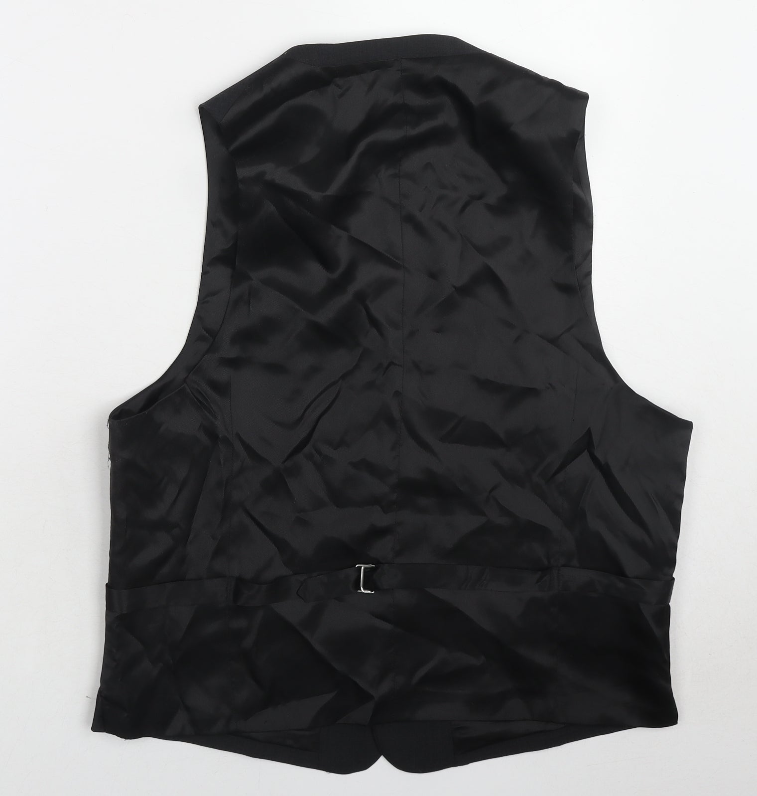 Mens Black Polyester Jacket Suit Waistcoat Size M Regular