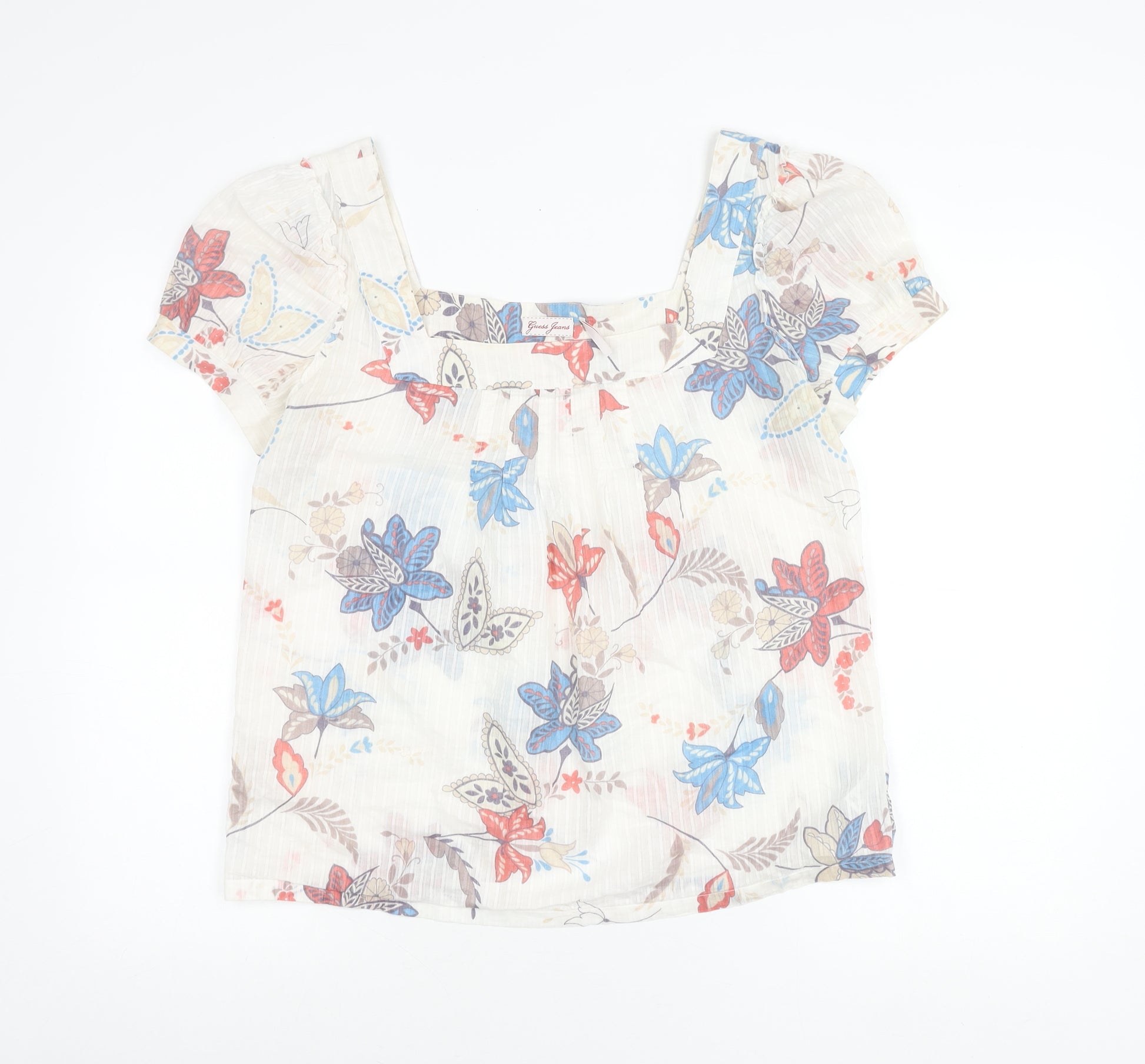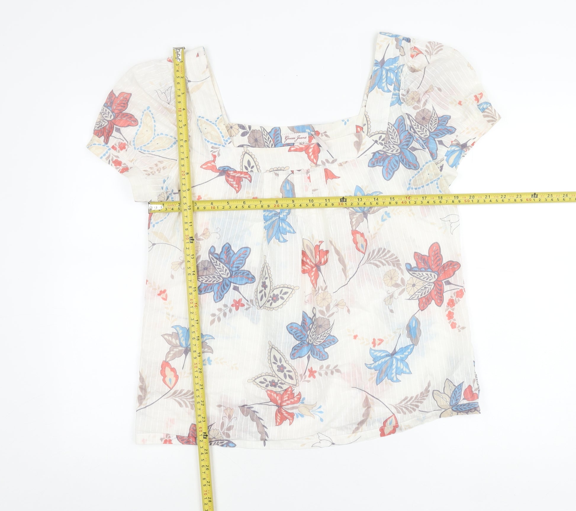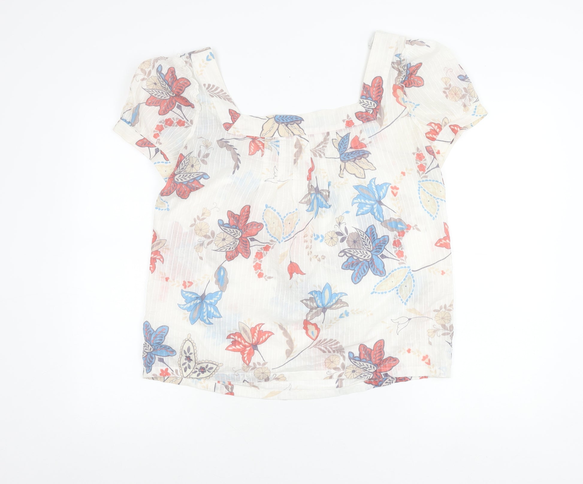 Womens Multicoloured Floral Peasant Blouse Size L Short Sleeve