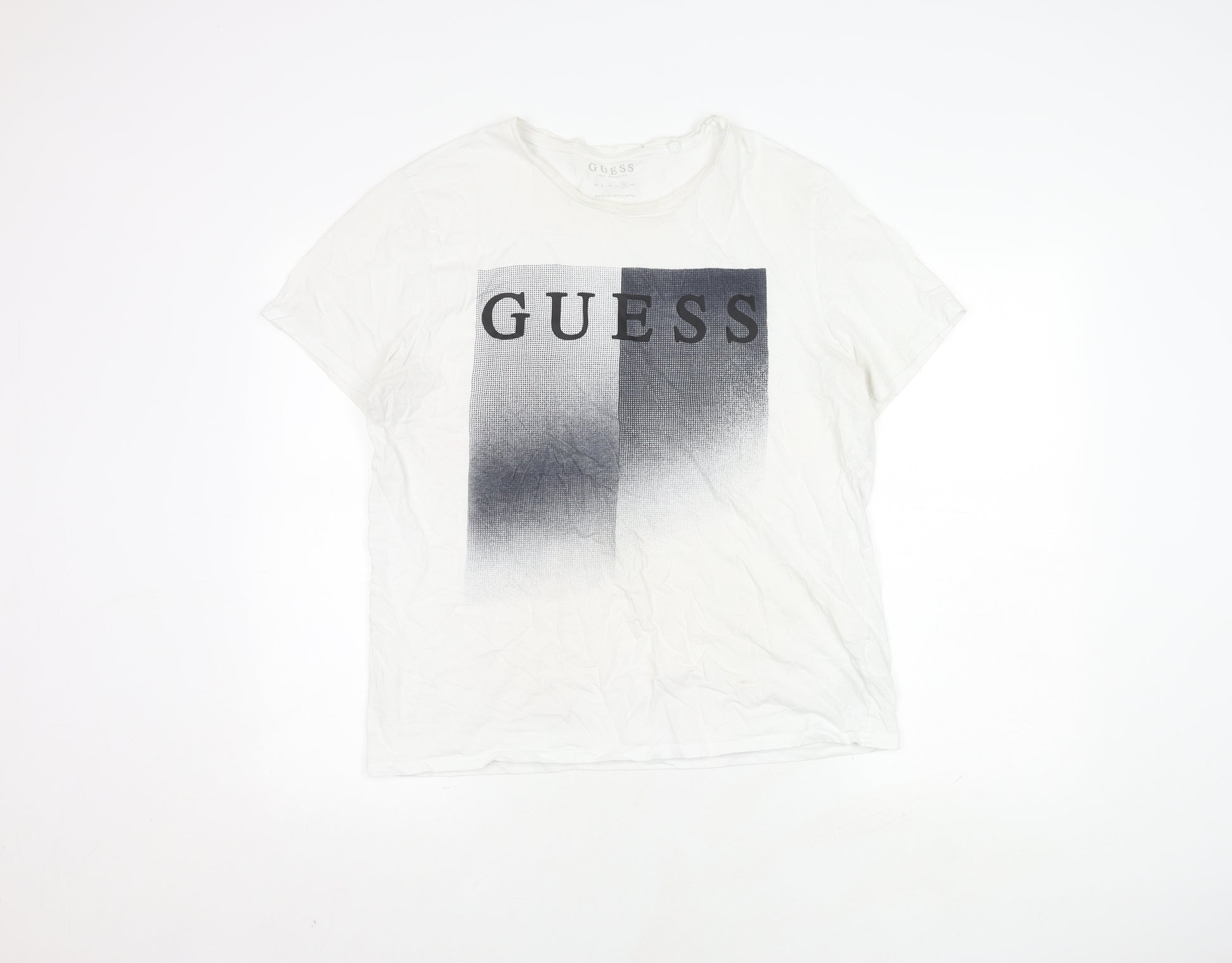 Guess Men's White Cotton Graphic Print T-Shirt XL