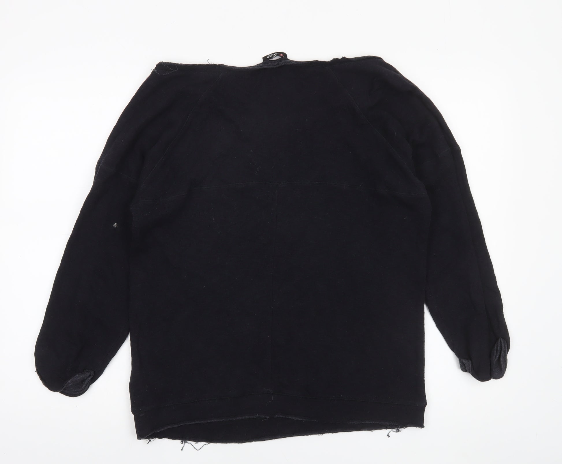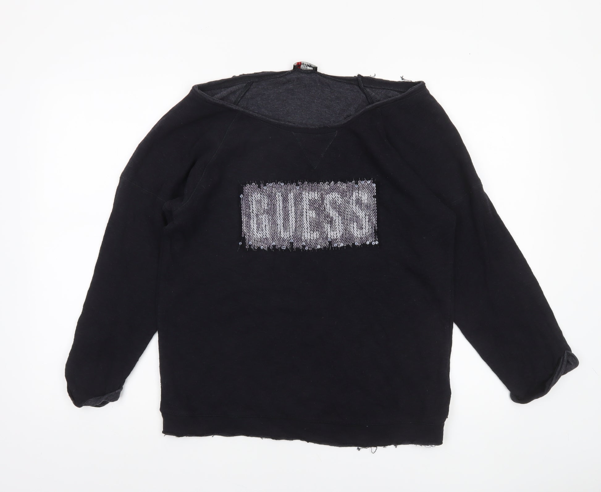 Guess Womens Black Sequin Logo Long Sleeve Jersey Top UK 12