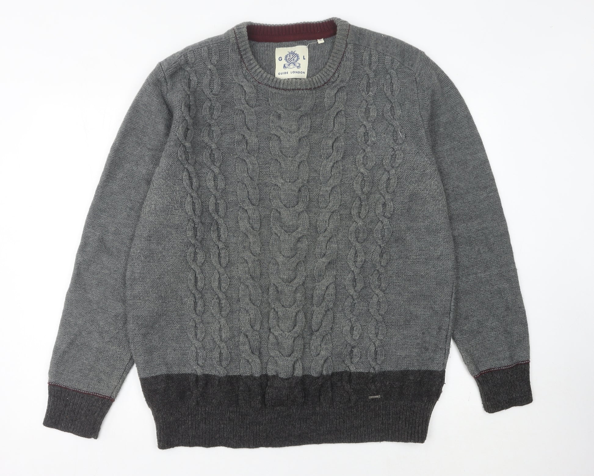 Stay warm and stylish this season with this premium Guide London men's grey cable-knit pullover jumper, crafted from a soft and durable blend of 70% acrylic and 30% wool. Designed for comfort and timeless style, this jumper features a classic crew neckline and a regular fit, making it ideal for layering over shirts or wearing on its own. The intricate cable-knit pattern adds a textured, traditional touch, while the contrasting darker grey ribbed hem and cuffs give it a modern edge. Perfect for autumn and winter wear, this jumper offers excellent insulation without feeling too heavy, making it practical for both indoor and outdoor settings. The long sleeves provide extra warmth, and the breathable knit ensures you stay comfortable throughout the day. Guide London is known for combining quality craftsmanship with contemporary design, and this jumper is no exception, delivering durability and elegance in equal measure. Suitable for a wide range of occasions, from casual weekend outings to smart-casual work settings, this versatile piece will quickly become a wardrobe favourite. Wear it with jeans for a relaxed look or pair it with tailored trousers for a more polished outfit. The machine-washable fabric ensures easy care, so you can enjoy its premium feel and look without high-maintenance upkeep. With its balance of comfort, practicality, and style, this Guide London grey cable-knit jumper is a must-have addition for anyone looking to elevate their knitwear collection.