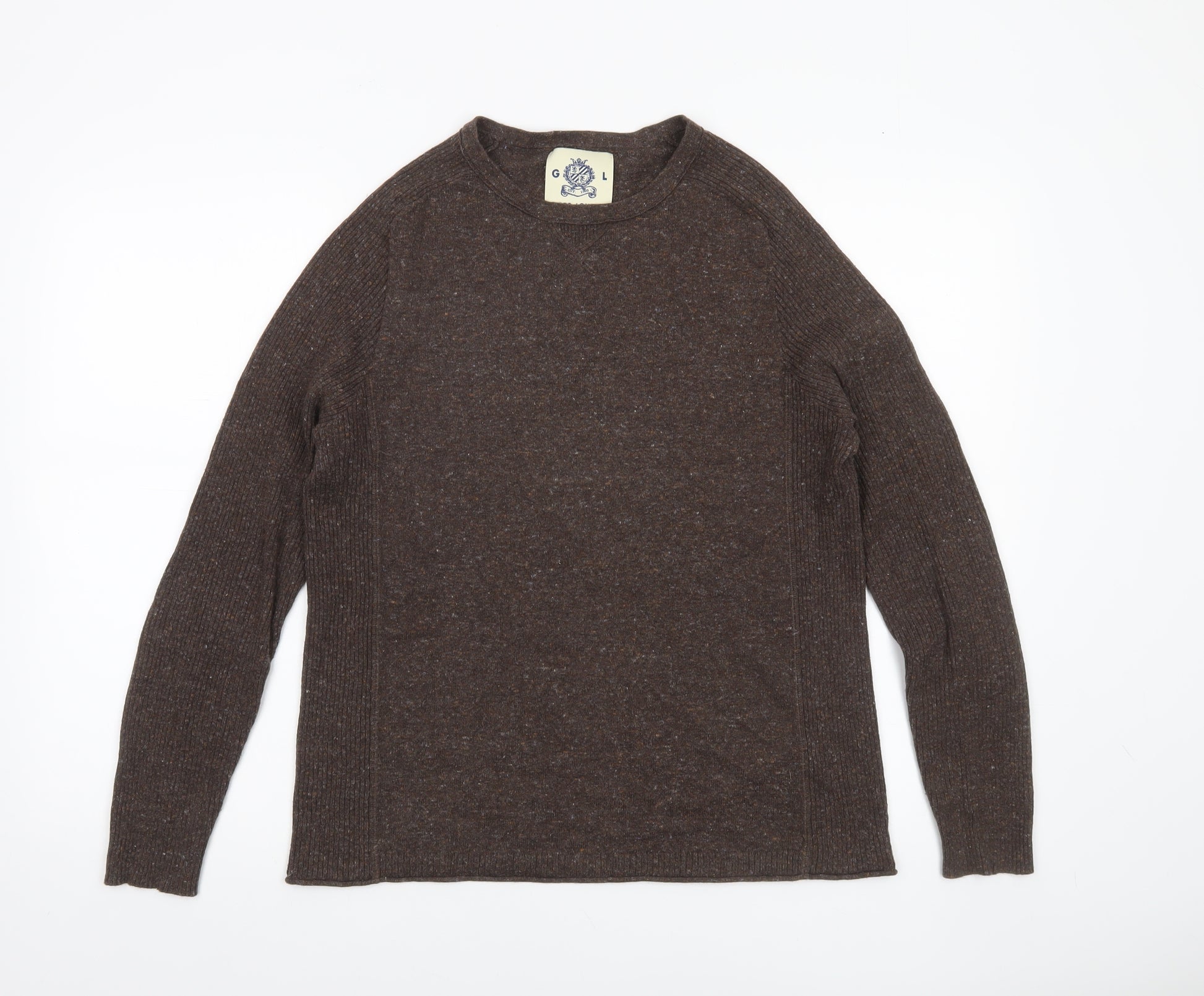 Step into timeless comfort with this beautiful brown crew neck jumper by Guide London. Expertly crafted from a luxurious blend of 95% cotton and 5% cashmere, this piece combines everyday practicality with understated elegance. The natural softness of cotton ensures breathability and comfort, while the touch of cashmere adds a refined finish, perfect for layering through the cooler months. Designed in a flattering regular fit, this long-sleeved pullover flatters the silhouette while providing warmth without bulk. The finely knit construction gives it a smooth texture and durability, making it a versatile wardrobe staple that pairs effortlessly with jeans or tailored trousers. Subtle raglan sleeves enhance ease of movement, and the midweight fabric is ideal for transitional seasons like autumn, winter and early spring. The rich brown hue offers a classic and sophisticated touch suitable for casual days out, relaxed weekends, or smart-casual evenings. This jumper captures Guide London’s dedication to quality craftsmanship and attention to detail, perfectly balancing contemporary fashion with enduring style. Though pre-owned, it remains in excellent condition with very light signs of wear, ready to provide lasting comfort and elegance for years to come. Machine washable for ease of care, this breathable knit is ideal for daily wear. Whether you’re dressing it up with a collared shirt or keeping it simple with denim, this crew neck cashmere-blend jumper will quickly become a go-to favourite in your collection. Add refined warmth and timeless British style to your wardrobe with this effortlessly versatile piece from Guide London.