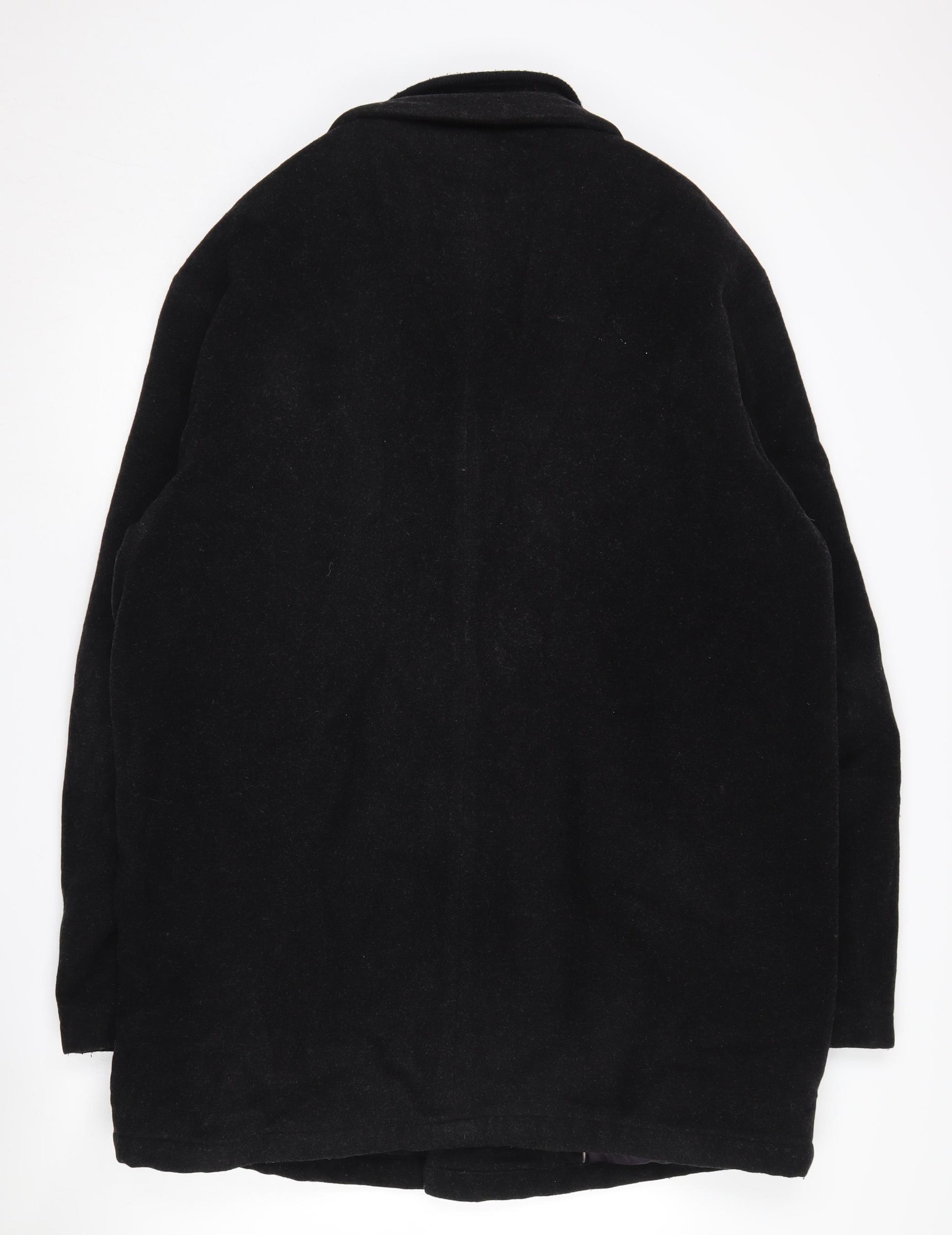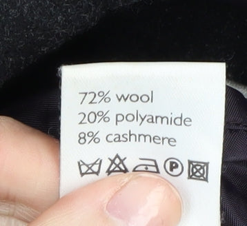 Stay effortlessly stylish and warm in this Guise Men's Black Wool Blend Overcoat. Ideal for the autumn and winter seasons, this coat features a sleek design with a zip closure and a point collar. Crafted from a luxurious blend of wool, polyamide, and cashmere, it offers a sumptuous feel while providing excellent insulation against the cold. The coat is fully lined for added warmth and comfort, making it perfect for any casual occasion. Its long length and regular fit ensure it complements any outfit, whether you're headed to work or a casual outing. Despite being in good condition, please note a small stain on the front, barely noticeable but worth mentioning. Embrace the minimalist appeal with no pattern, making this overcoat a timeless addition to your wardrobe. Dry clean only to maintain its elegant finish. Don't miss out on this essential piece that combines practicality with sophistication at a competitive price.