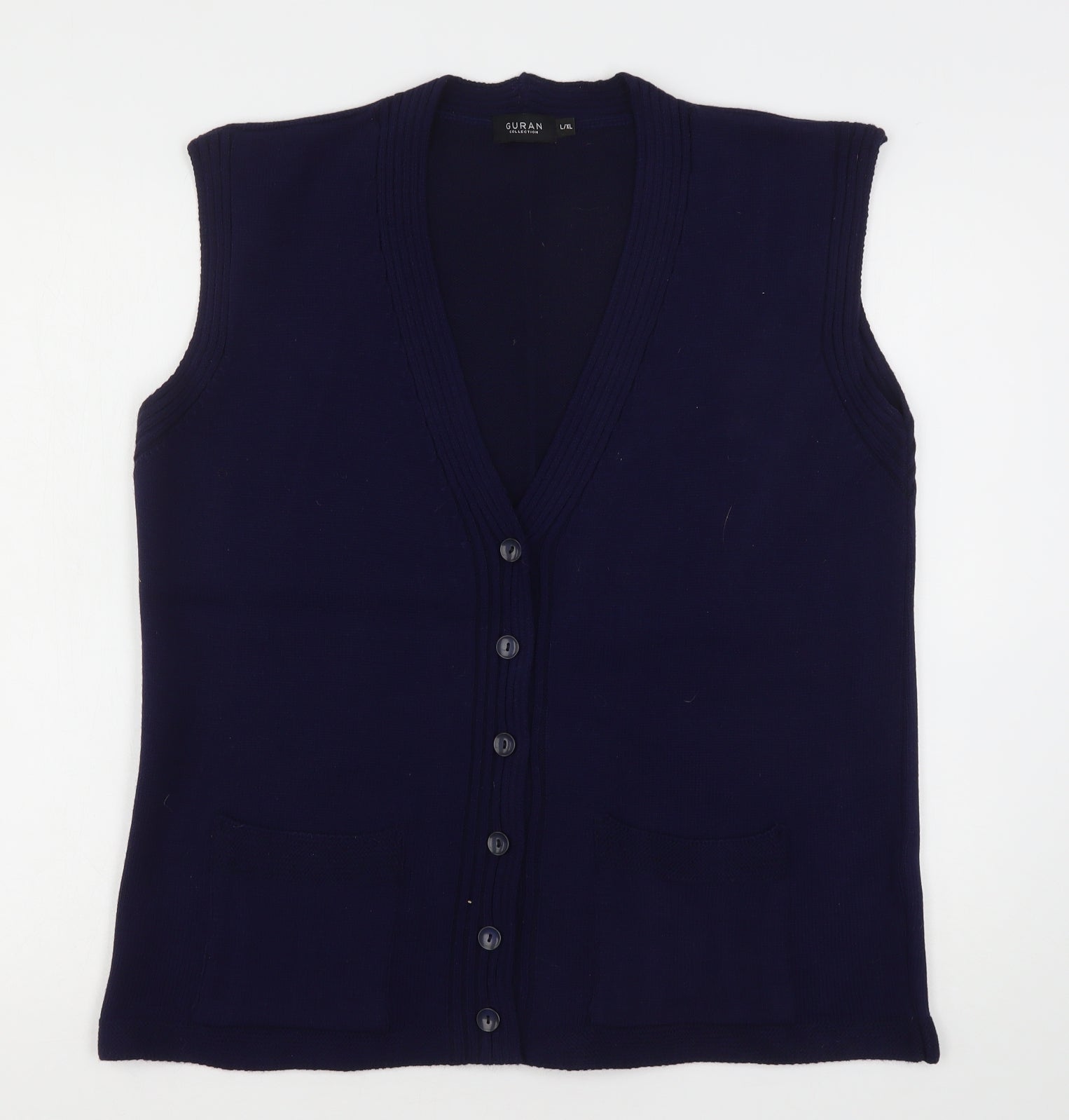 Womens Blue V-Neck Acrylic Cardigan Jumper Size L