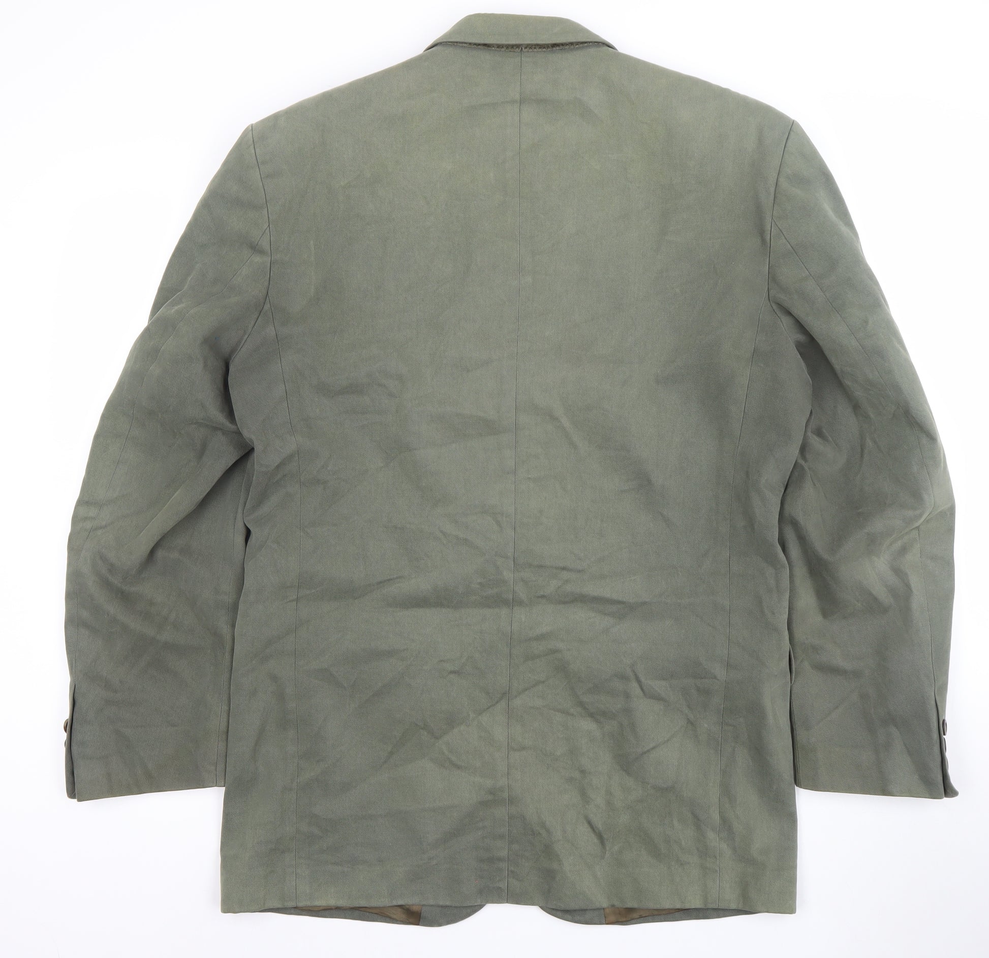 Mens Green 40L Cotton Single-Breasted Blazer Jacket