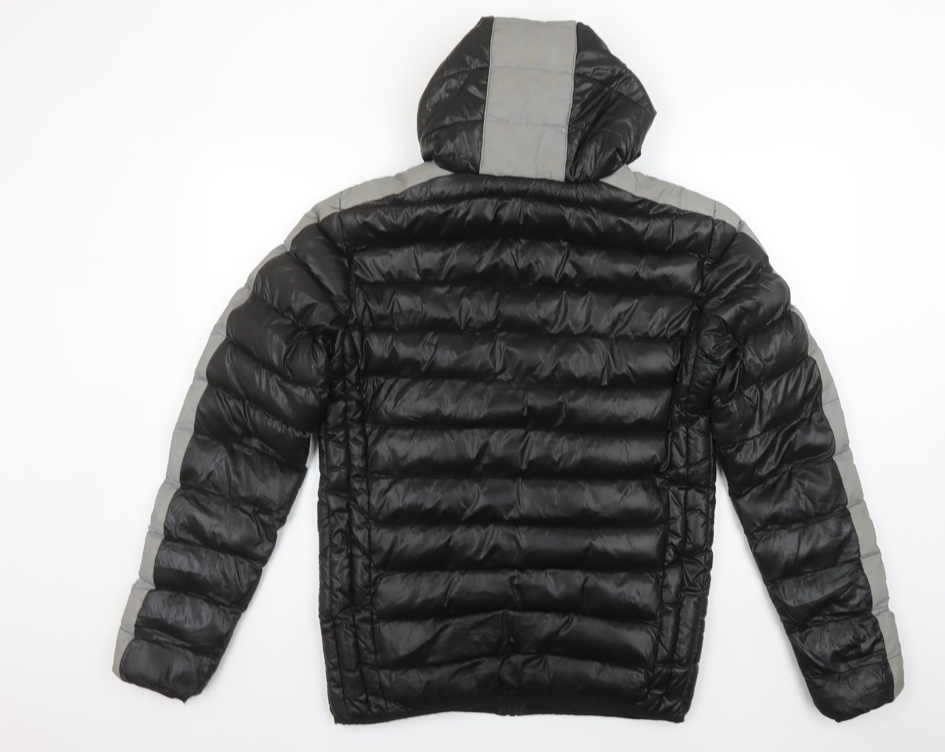 Mens Black Puffer Jacket S Hooded Padded Full Zip Winter Coat