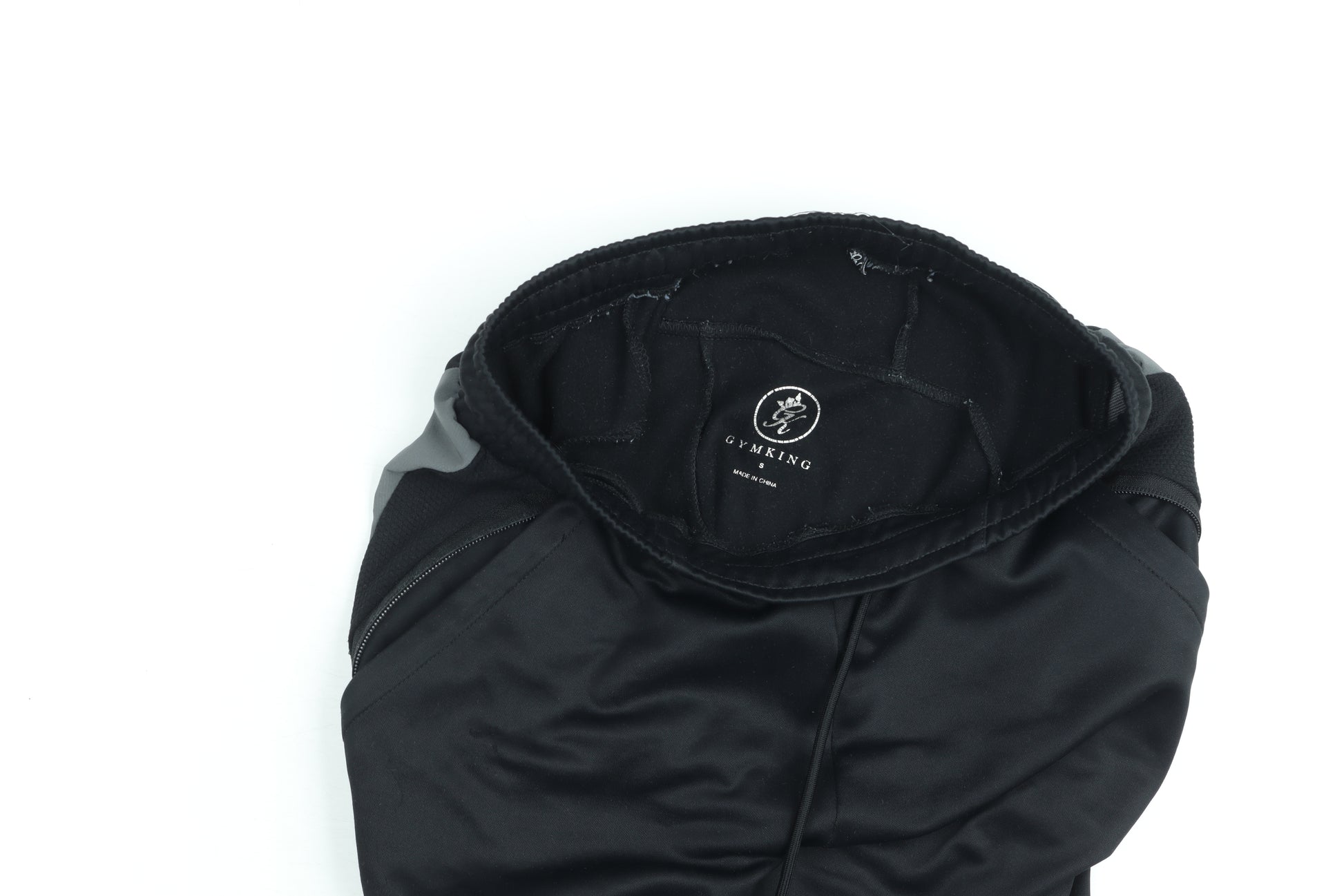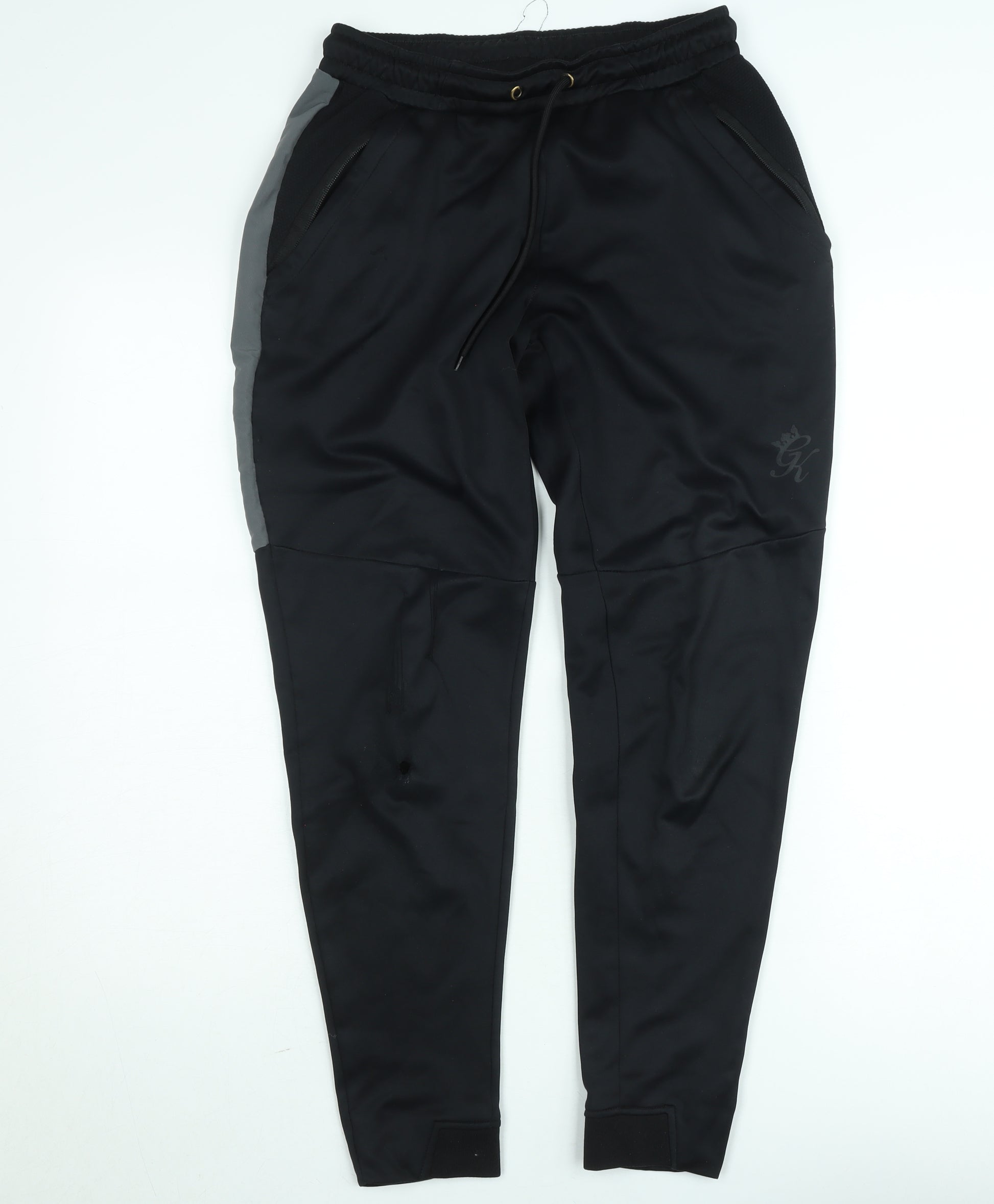 Take your active style to a new level with these Gym King men's black jogger trousers, perfect for both gym sessions and laid-back days. Designed with a tapered slim fit, these joggers offer a modern silhouette that complements your athletic shape without compromising on comfort. The premium softshell polyester-blend fabric ensures a smooth, flexible feel that moves with you, ideal for everyday wear or active performance. Featuring an elasticated waistband with an adjustable drawstring, the trousers provide a secure, custom fit to keep you comfortable through workouts or casual outings. The stylish zip pockets are perfect for keeping small essentials safe, while the minimalist Black design with subtle Gym King branding adds a sleek touch. Quick-dry and stretch-enhanced, the material offers functional benefits for training, running, or daily activities, with breathability and moisture-wicking properties to ensure lasting comfort. Suitable for autumn, spring, or winter wear, the joggers are easy to care for and machine washable. Though gently used and showing a small minor hole on one leg, they remain in very good condition, ready for more wear. Whether hitting the gym, running errands, or relaxing at home, these trousers combine practicality with street-ready edge. Pair them with your favourite training top or hoodie for a complete gym or lounge look that keeps you looking confident and comfortable. An excellent choice for the modern active man looking for sleek styling, performance fit, and everyday versatility.