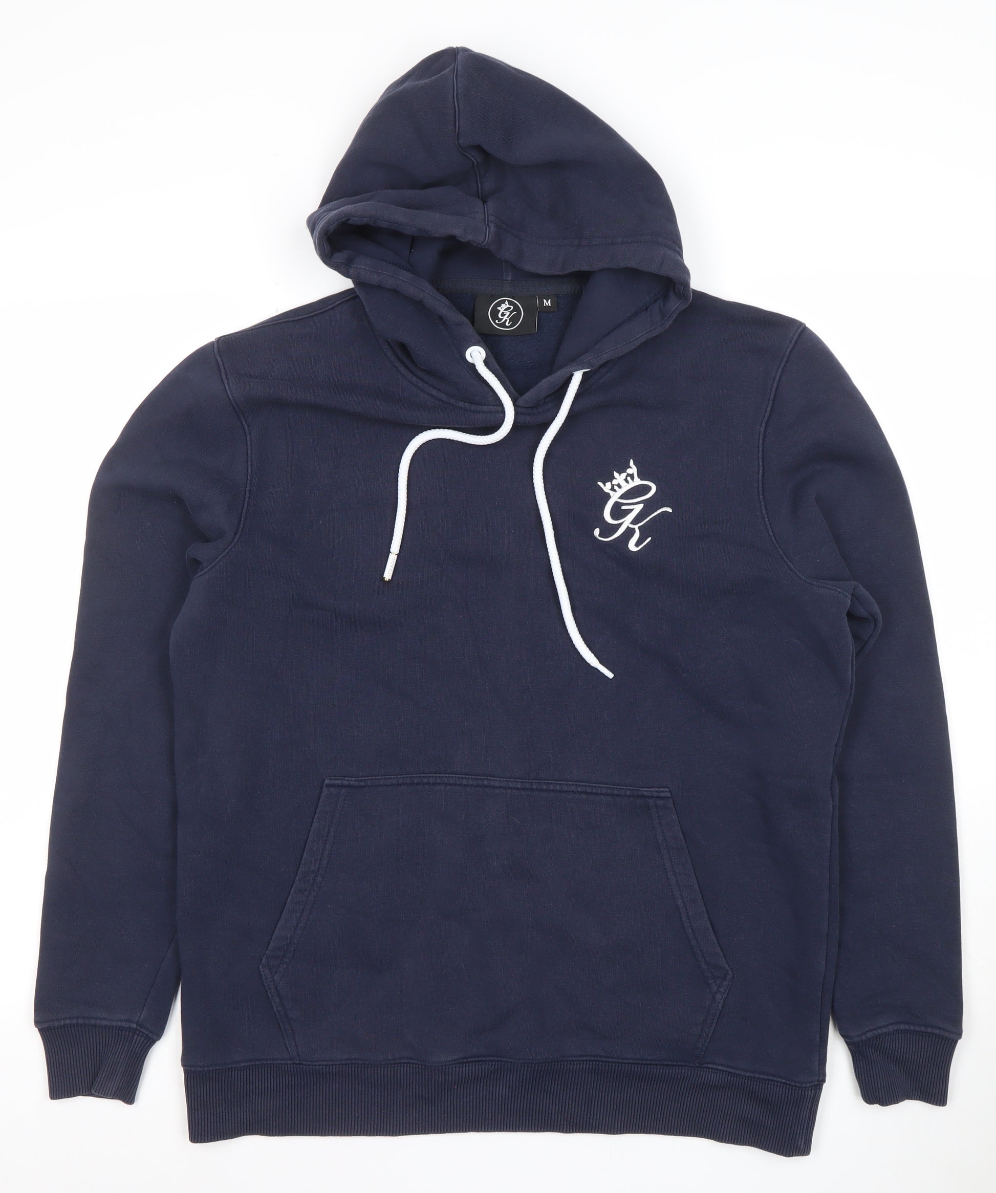 Men's Blue Pullover Hoodie Size M Fleece Logo Sweatshirt