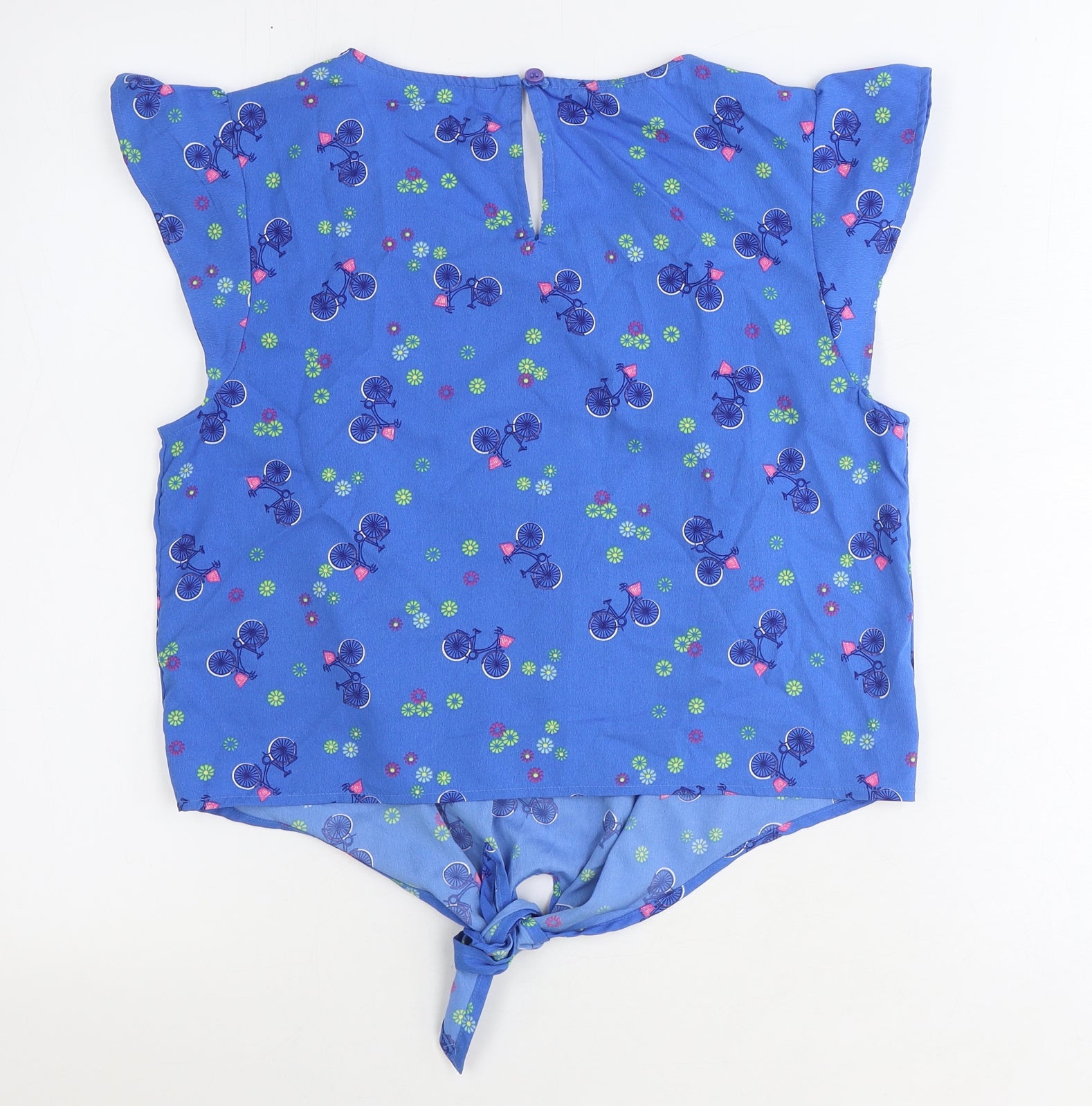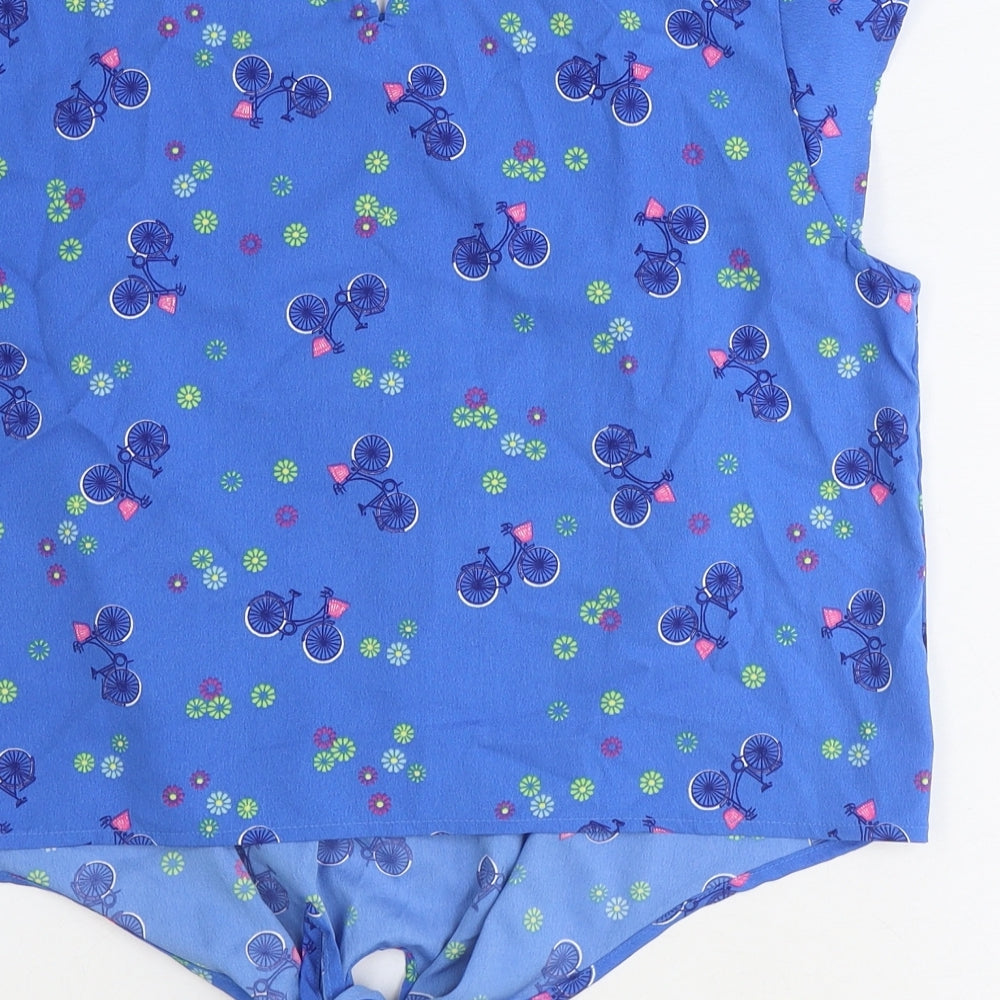 Womens Blue Geometric Polyester Basic T-Shirt Size 10 Scoop Neck - Bicycle Knot Front