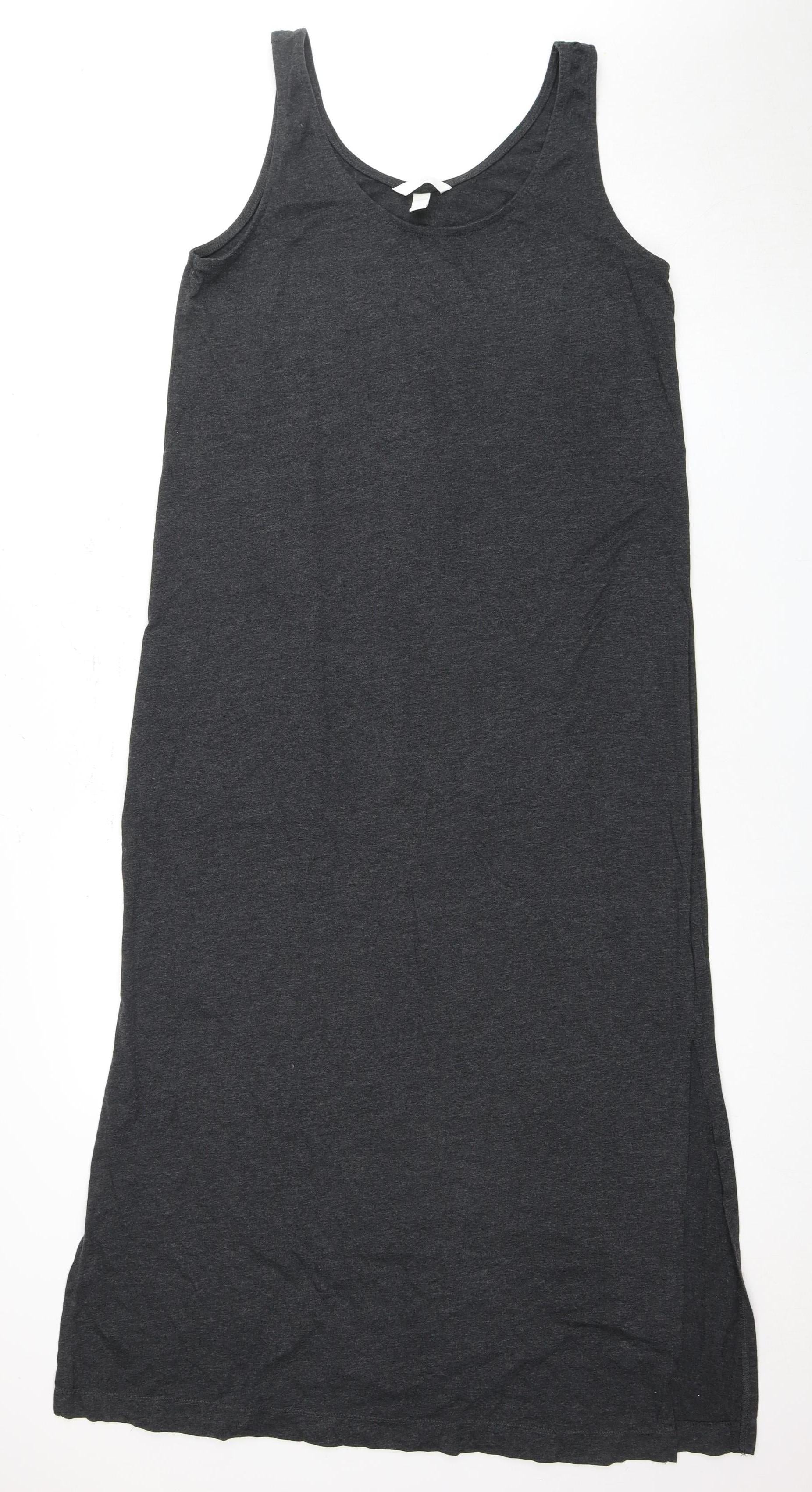 Discover the ultimate in casual comfort with this H&M Basics Women's Tank Dress in sleek black. Perfectly designed for the stylish woman, this medium-sized dress is crafted from a soft jersey blend of 60% cotton and 40% polyester, ensuring a breathable and stretchable fit. The sleeveless design and scoop neckline offer a relaxed and modern style, making it a staple for summer wardrobes. Whether you're heading out for a casual day or enjoying a laid-back outing, this dress promises to keep you comfortable and chic. Its pullover closure and lightweight material make it easy to wear and care for, with machine-washable fabric that retains its shape and softness. Simple yet versatile, this dress is free from patterns, allowing you to accessorize to your heart's content. Ideal for summer occasions, its straightforward design makes it a perfect piece for layering or wearing as is. Elevate your everyday look with the effortless charm and practicality of this H&M Basics dress. Minimal signs of wear ensure excellent condition, making it a fantastic choice for those seeking both quality and style at an affordable price. Don't miss the opportunity to add this versatile piece to your collection.